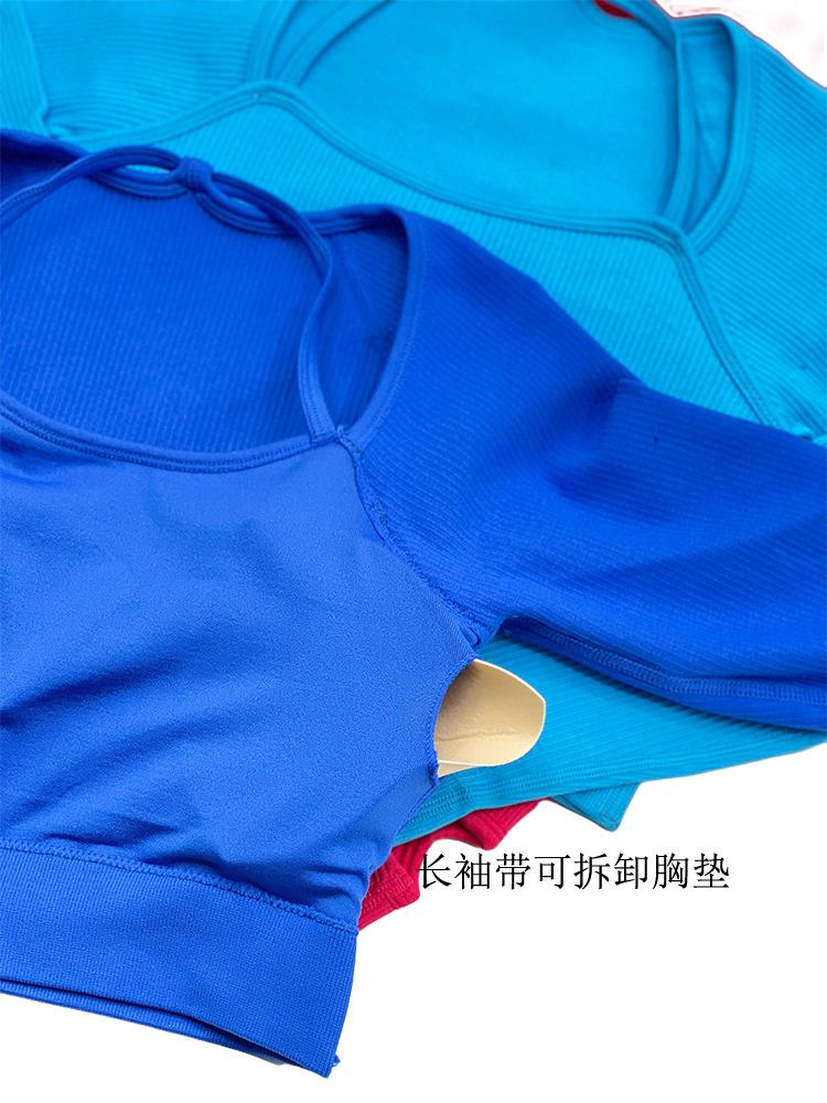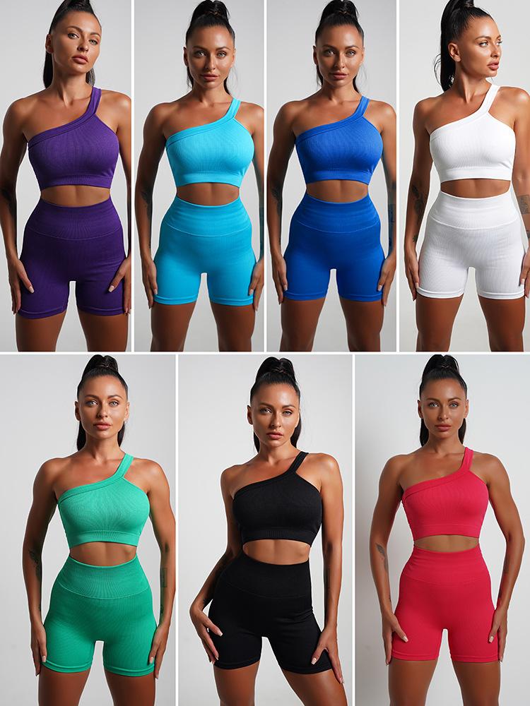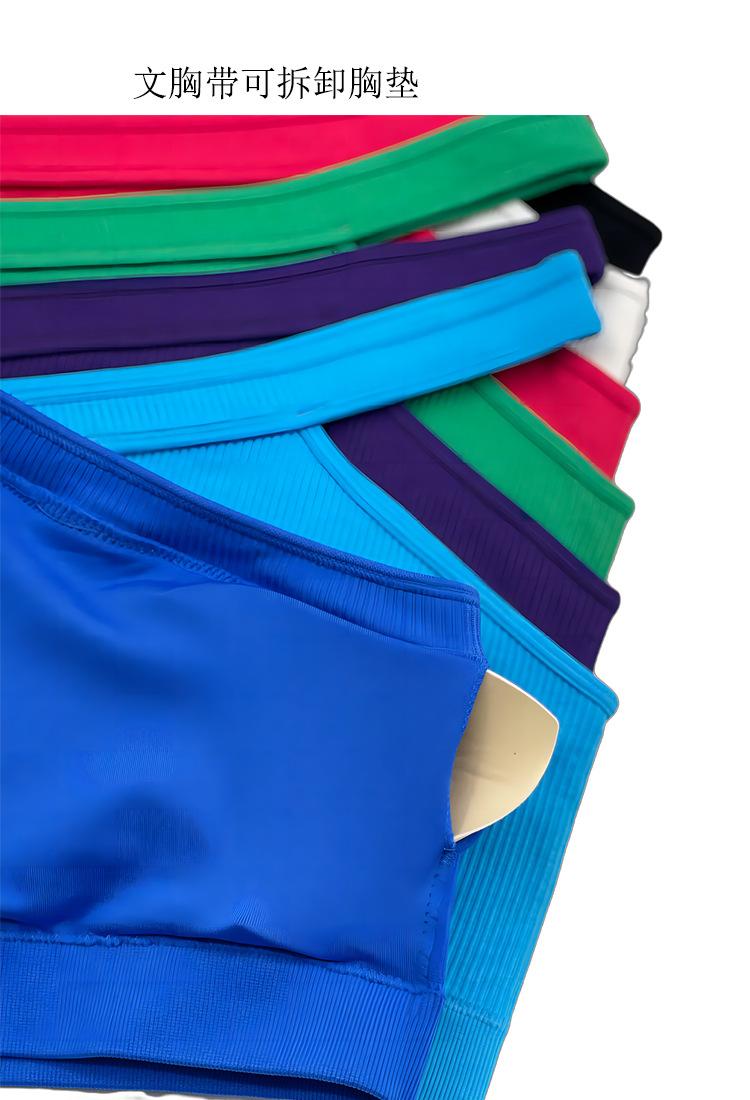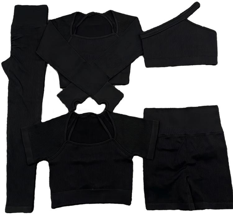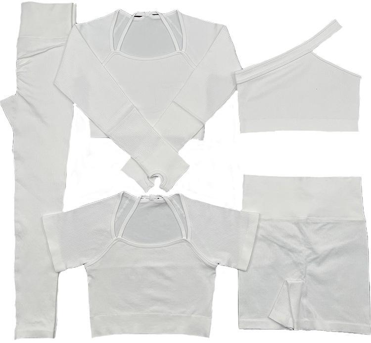 Conjunto de cinco piezas de pantalones cortos y sujetador de manga corta y manga larga de estilo europeo y americano, top de fitness, chaleco, ropa de yoga de punto de comercio exterior