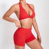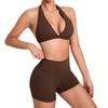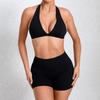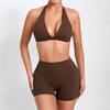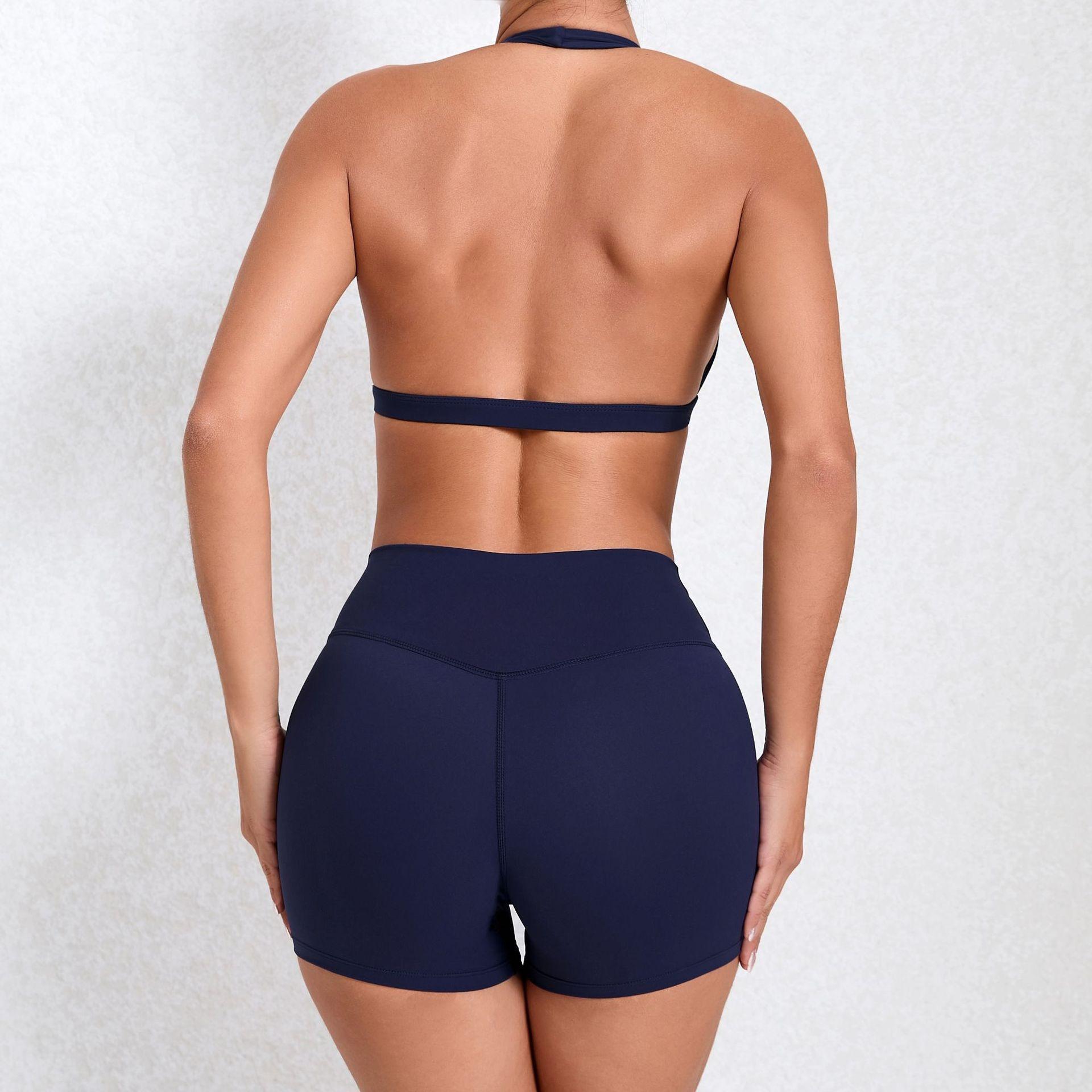 Nuevo Sujetador Deportivo Sexy de Cuello Cruzado Europeo y Americano para Mujer para Correr y Fitness Espalda Hermosa Yoga Pantalones de Tres Puntos Set de Yoga