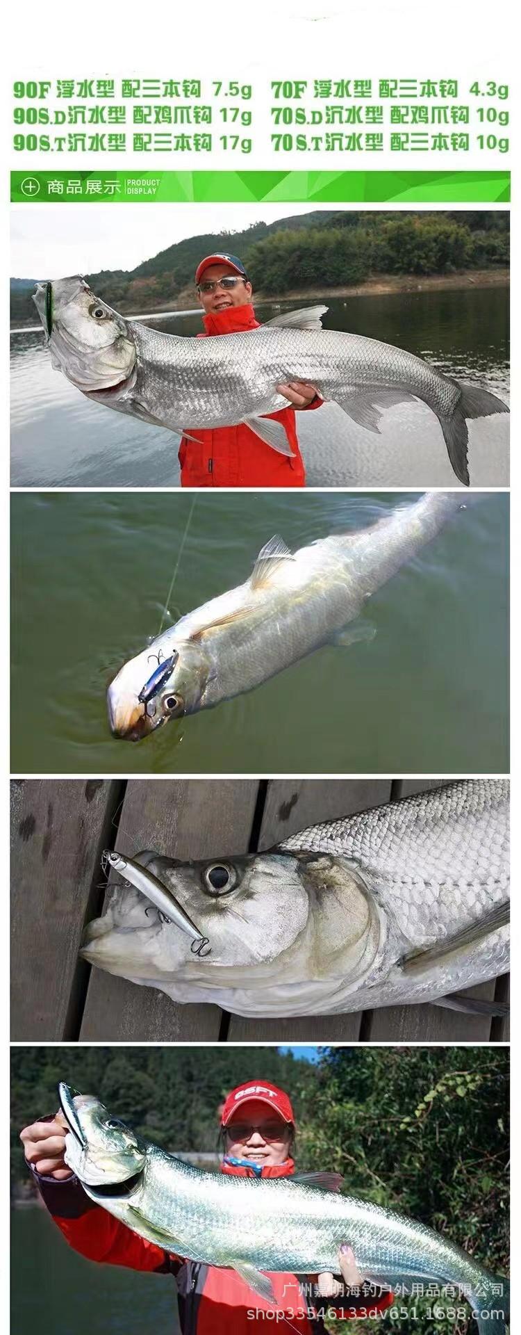 Submerged 90S(T with three hooks) 17g, Floating type 90F-7.5g, Floating type 70F-4.3g, Submerged 70S(D with ch...