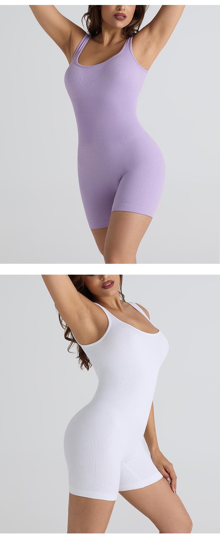 Traje de yoga ajustado con hilo sin costuras europeo y americano, traje de fitness de línea sin vergüenza, mono sexy de verano europeo y americano para mujer