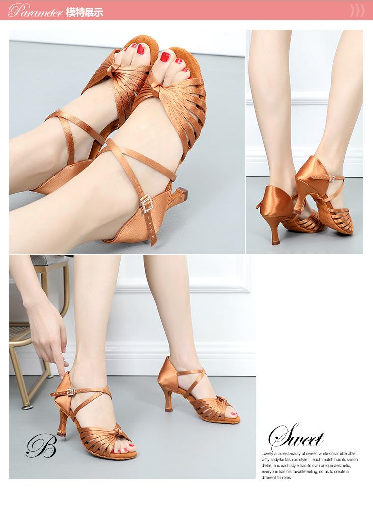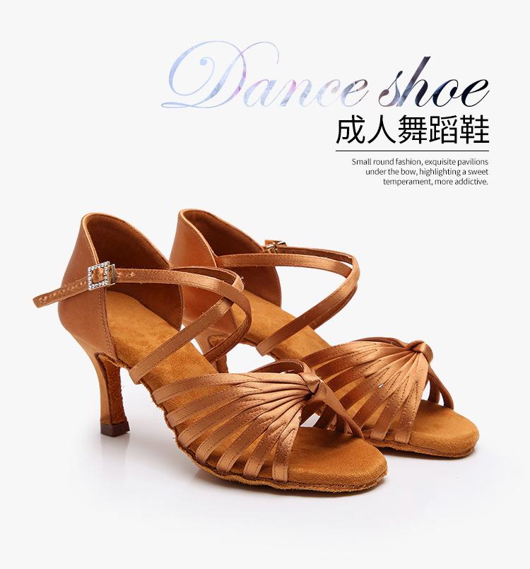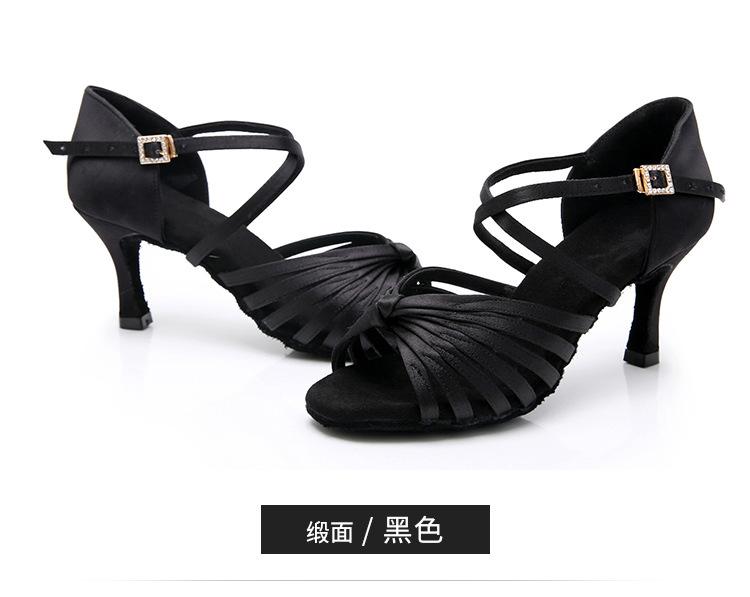 Zapatos de baile latino profesionales de seda para adultos con suela blanda y hebilla de diamante para mujer, zapatos de baile de salón, tacón alto, prueba de rendimiento Cha