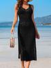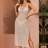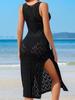 Nuevo Transfronterizo Europeo y Americano Amazon Suelto Largo Color Sólido Abertura Lateral Playa Hueco Blusa Tejida Ropa de Protección Solar para Mujer