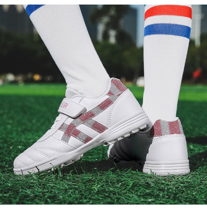 Zapatos de fútbol para niños, clavos rotos, césped artificial, antideslizantes, con velcro, para niñas, zapatos deportivos para estudiantes, zapatillas de entrenamiento de competición