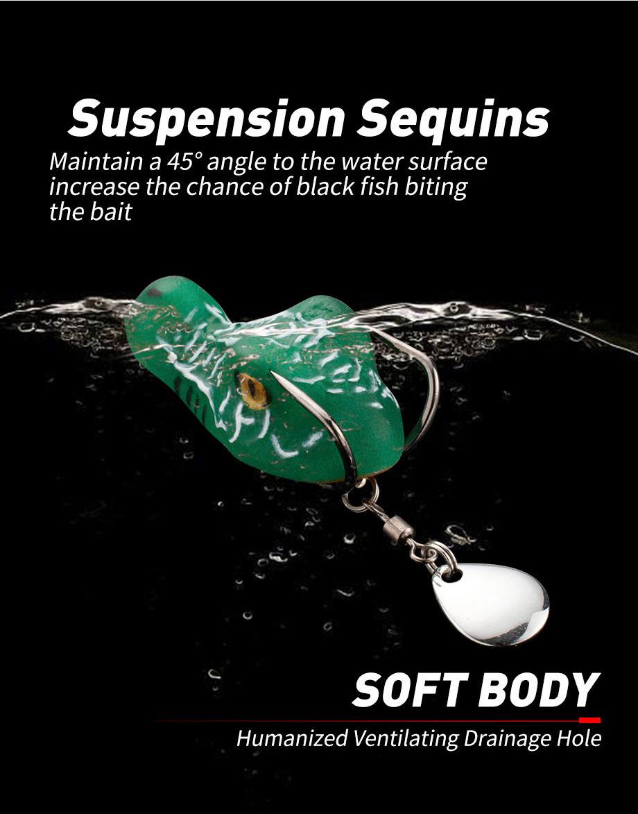 Cebo Luya Little Thunderfrog con lentejuelas, rana conejo, 40 mm, 8 g, estilo tailandés, mini Thunderfrog, anzuelo doble, cebo falso, pez negro