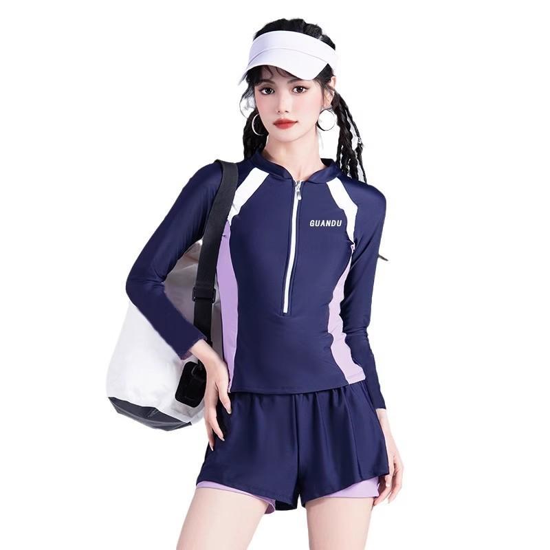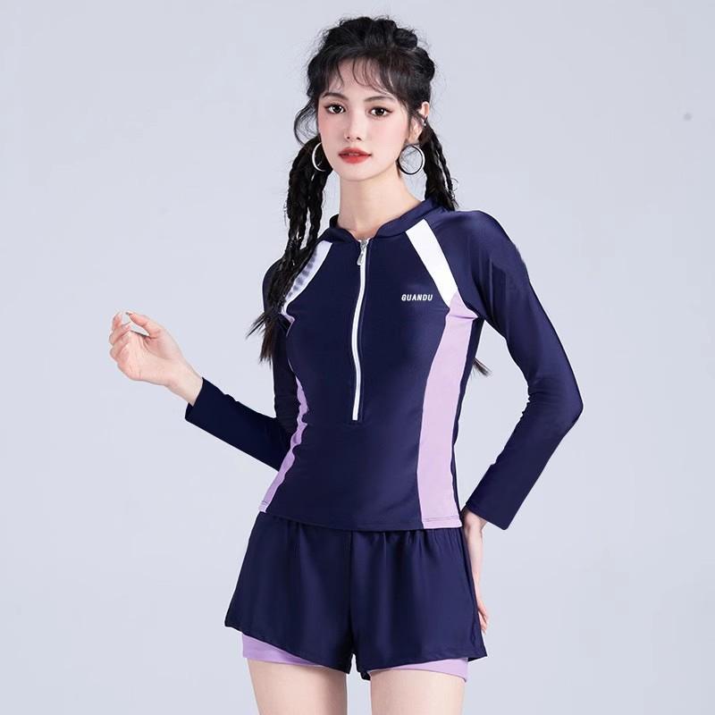 Traje de Baño Nuevo 2025 para Mujer Manga Larga Conservador Adelgazante Cubre Vientre Entrenamiento Deportivo Chica Dulce Chica de Aguas Termales Traje de Baño de Estudiante