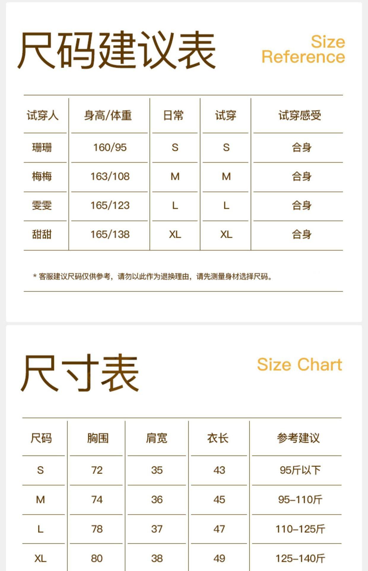 S (recommended within 45kg ), M (recommended within 45-50kg ), L (recommended within 50-55kg ), Xl (recommended within 55-60kg )