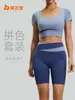 Conjunto de Ropa de Yoga Juyitang con Bloques de Color para Mujer, Primavera y Verano, Top Corto, Pantalones de Cintura Alta Levanta Glúteos, Ropa para Correr y Fitness