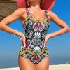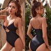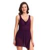 Traje de Baño Sexy para Mujer con Tirantes y Escote en V Profundo de Color Sólido, Tipo Falda de Una Pieza