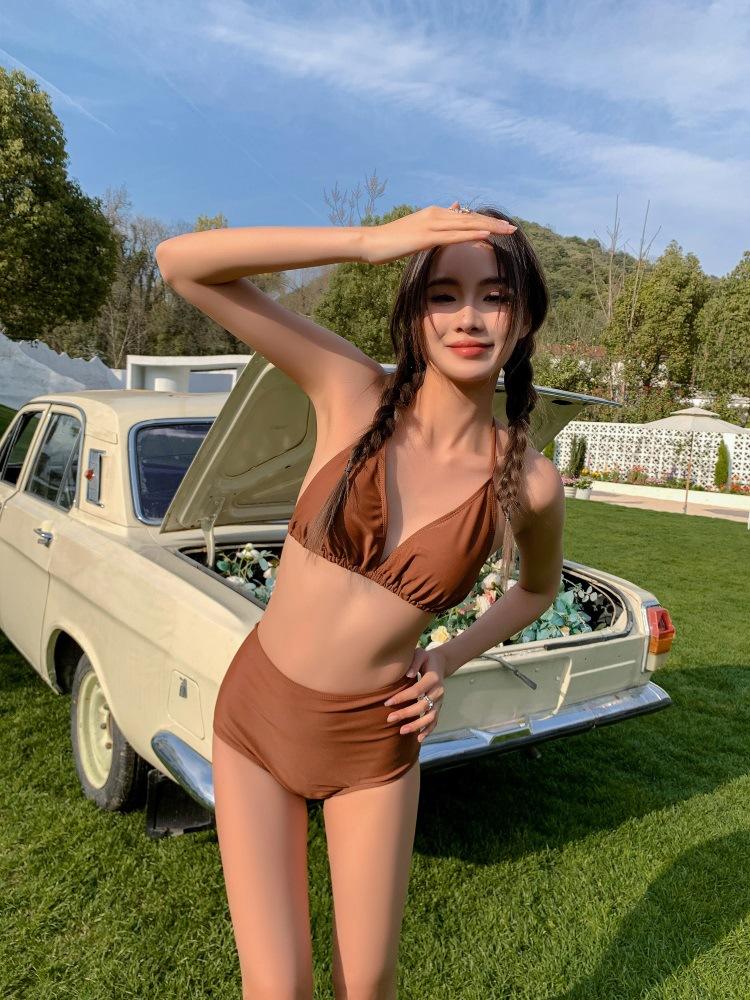 Fábrica de Origen 2024 Nuevo Traje de Baño Conservador de Tres Piezas con Tirantes y Espalda Descubierta con Tótem de Cintura Alta Dividida para Mujer