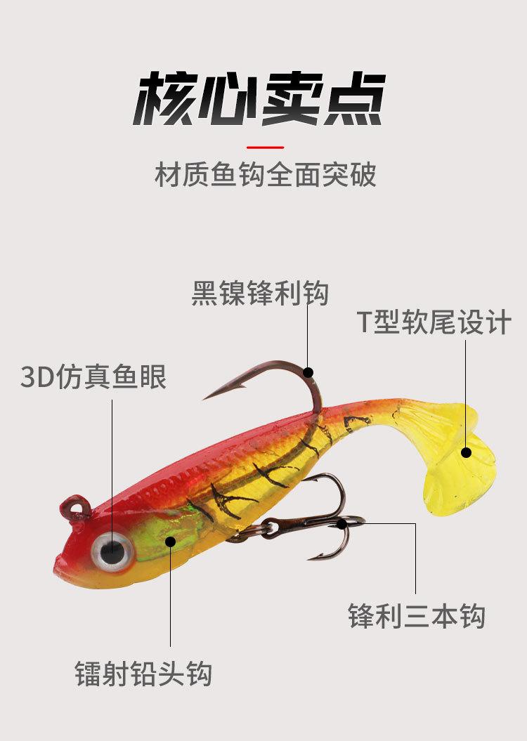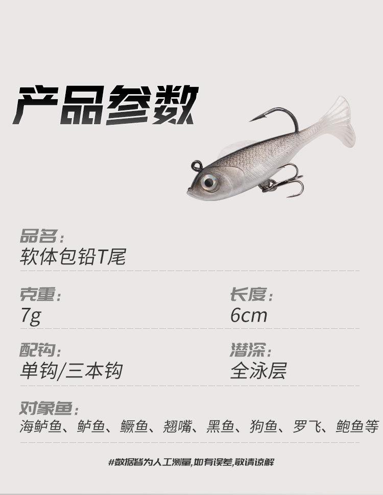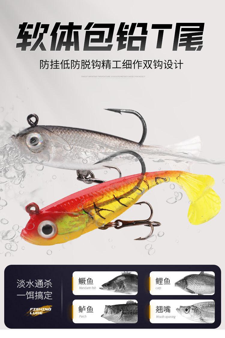 Cebo blando de plomo envuelto con láser, cebo biónico Luya de cola en T, cebo falso para pesca en el mar, simulación de pesca en agua dulce, cebo blando
