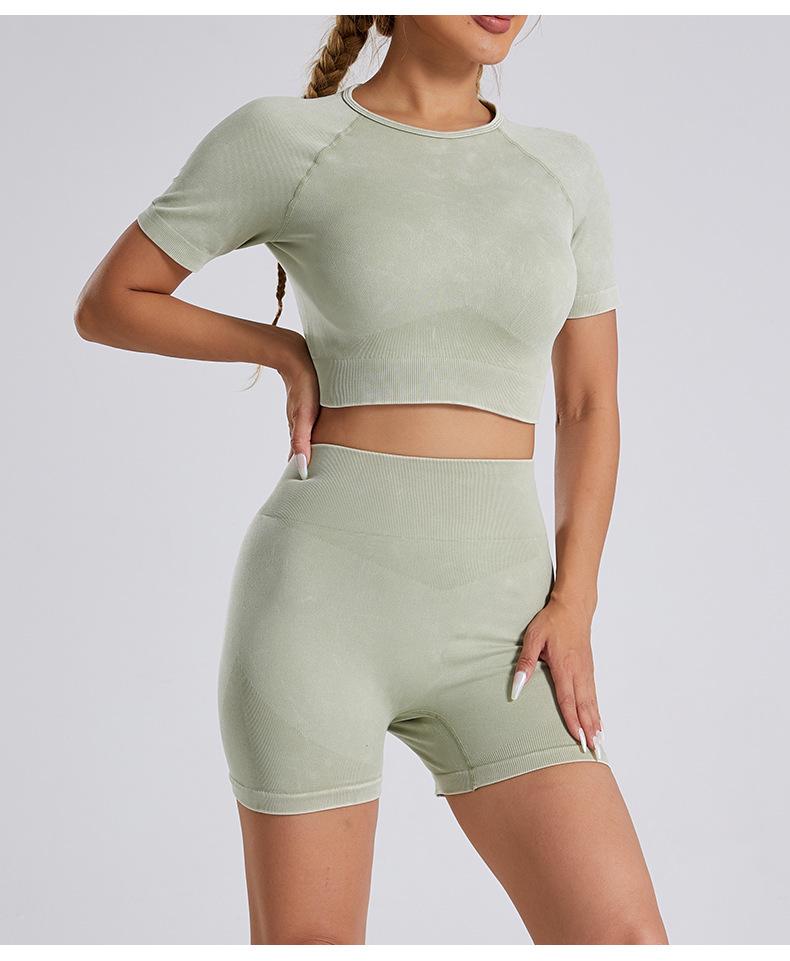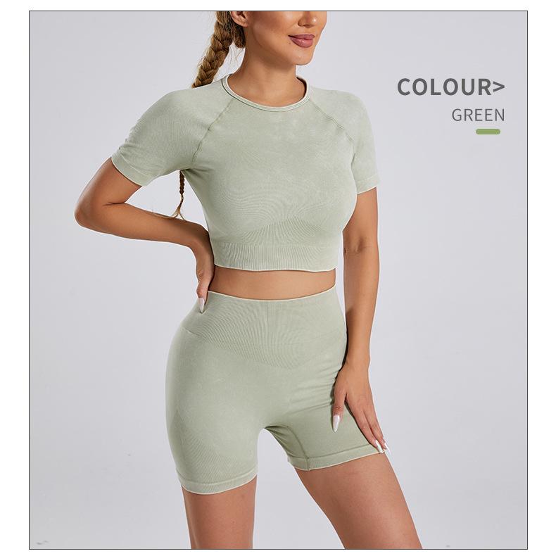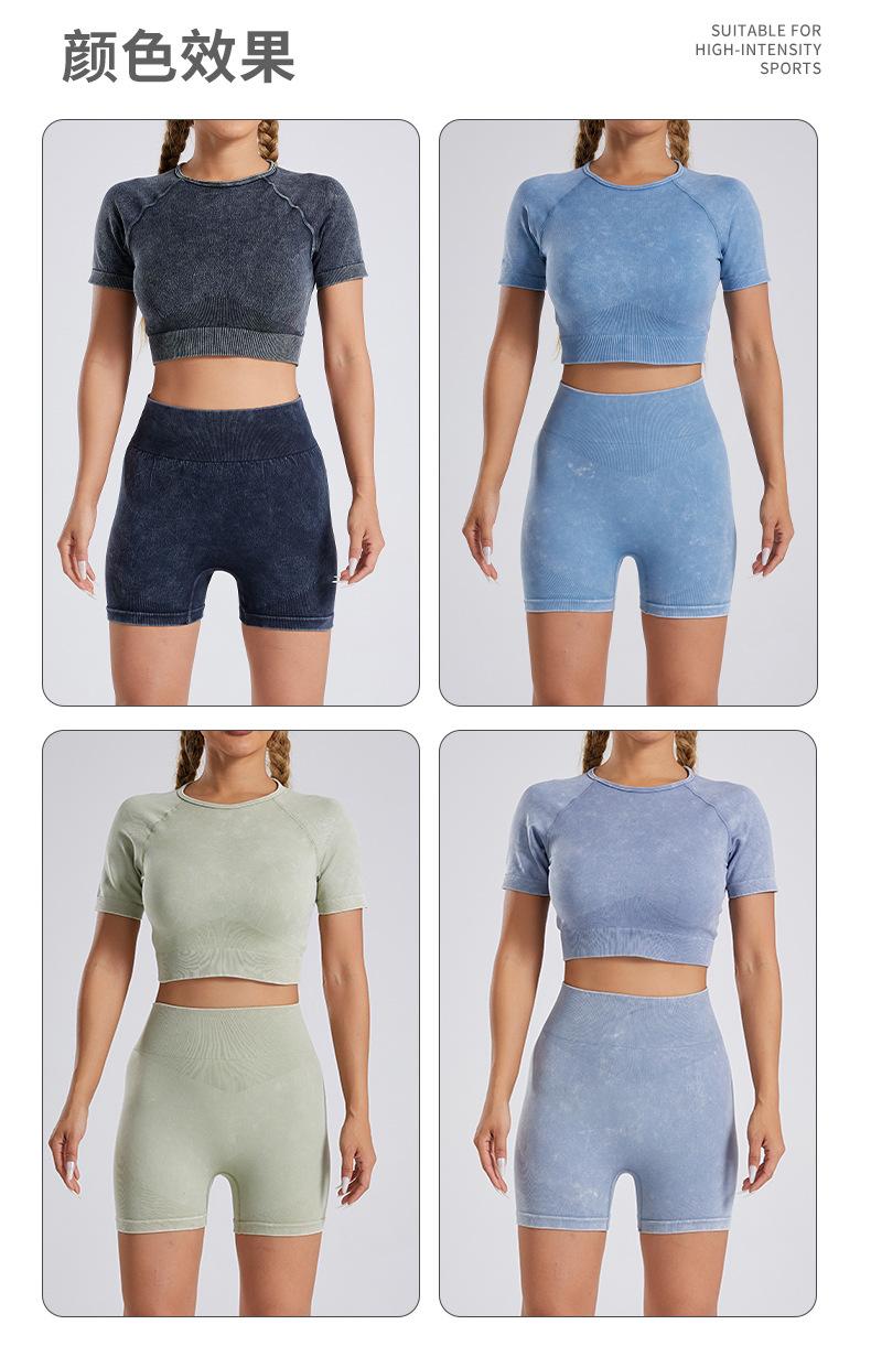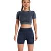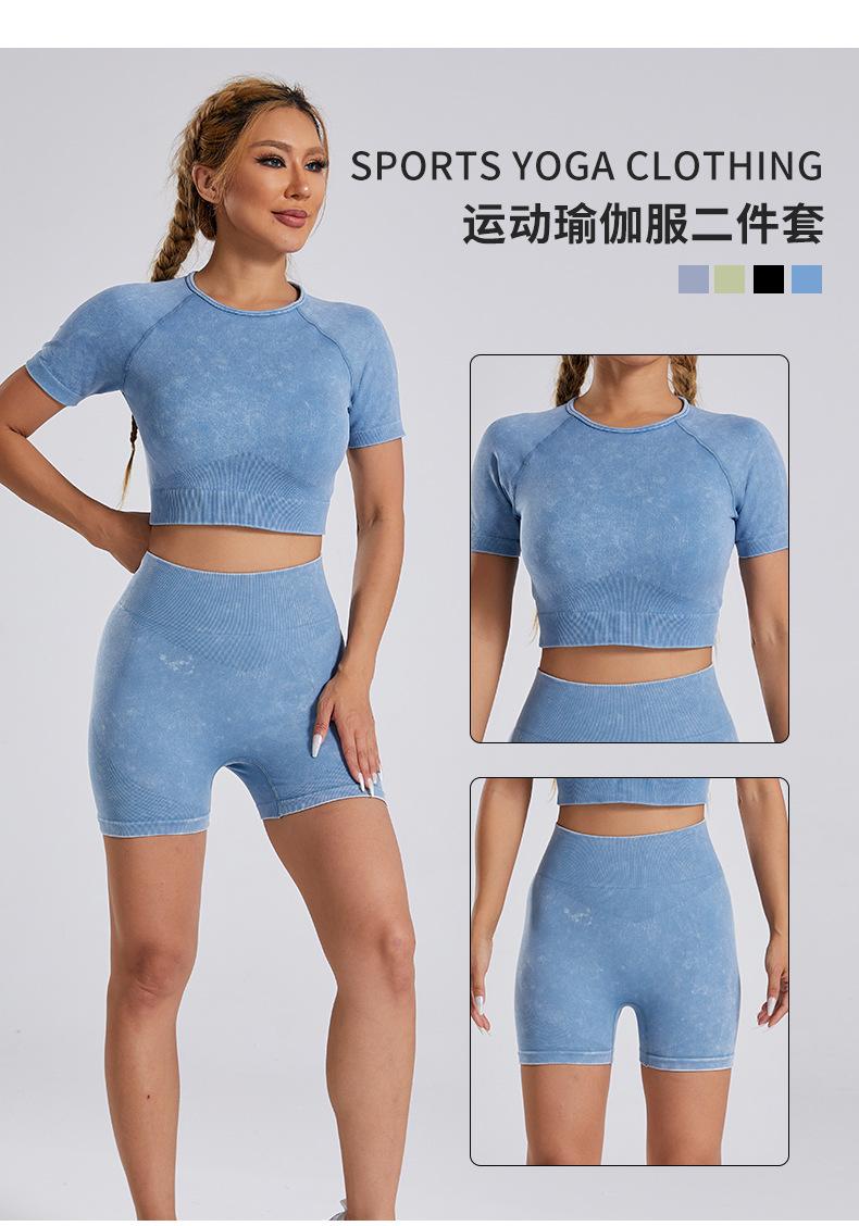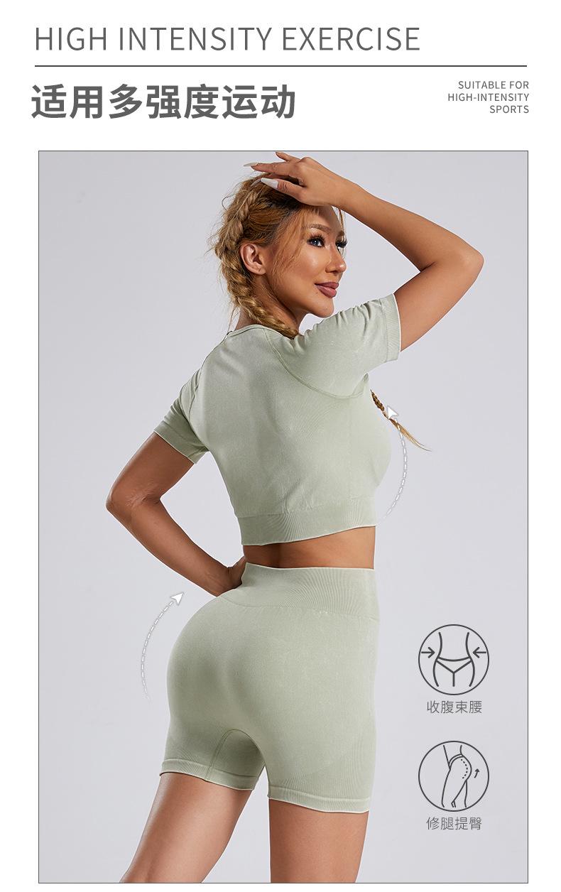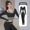 Traje de yoga ajustado europeo y americano para mujer, de dos piezas, sin costuras, para correr, deportivo, de punto, transpirable, de secado rápido.