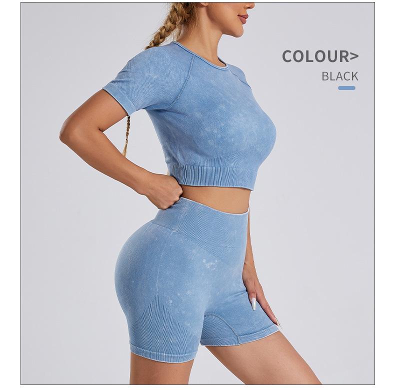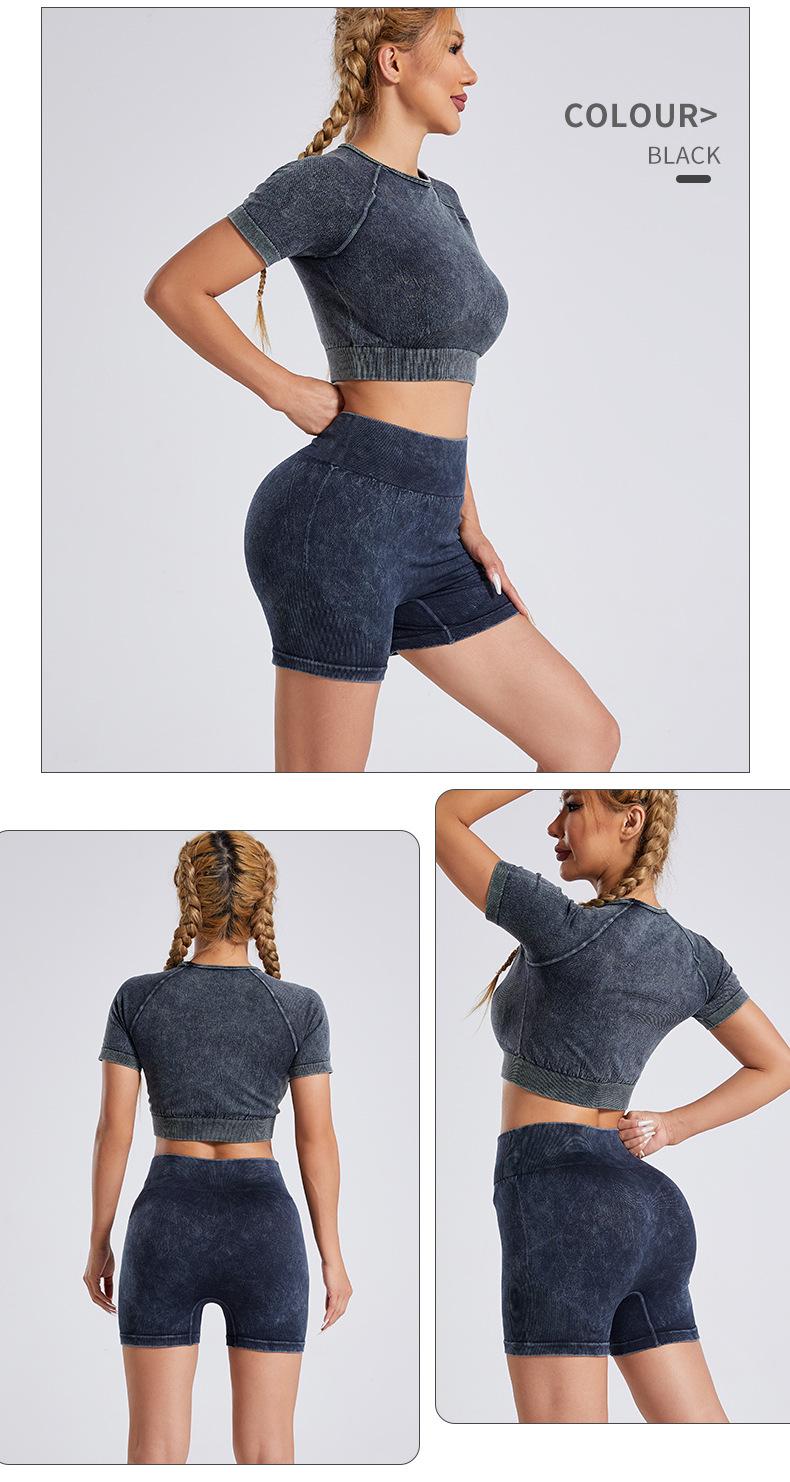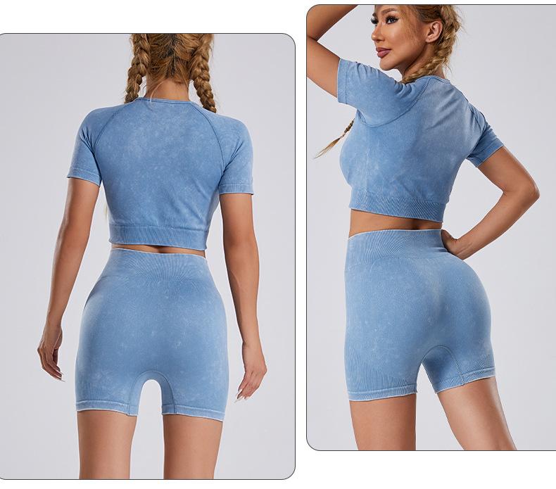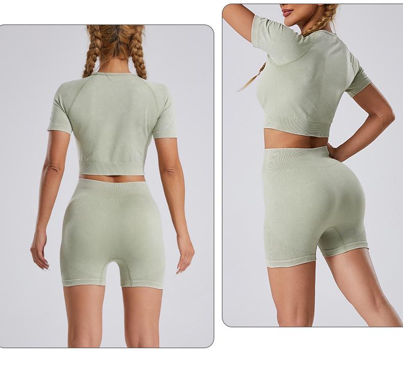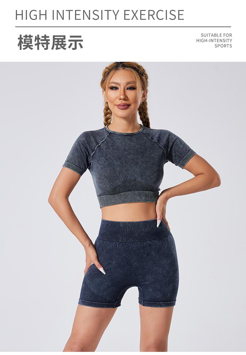 Traje de yoga ajustado europeo y americano para mujer, de dos piezas, sin costuras, para correr, deportivo, de punto, transpirable, de secado rápido.