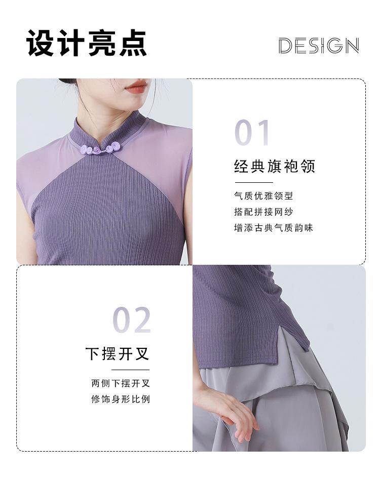Vestido de práctica de danza clásica de estilo chino para mujer, top de baile moderno, vestido cheongsam mejorado, chaleco ajustado sin mangas