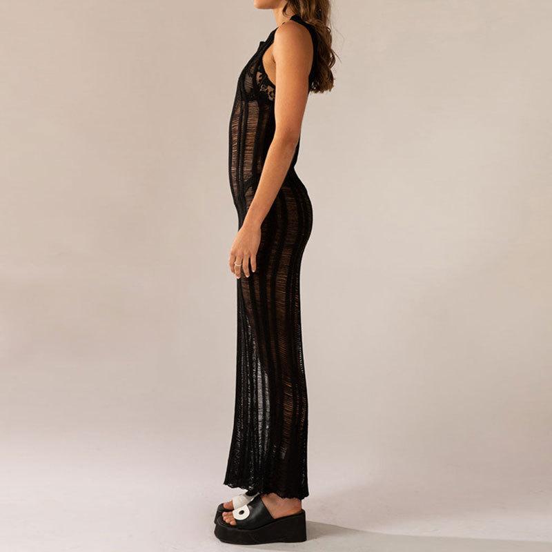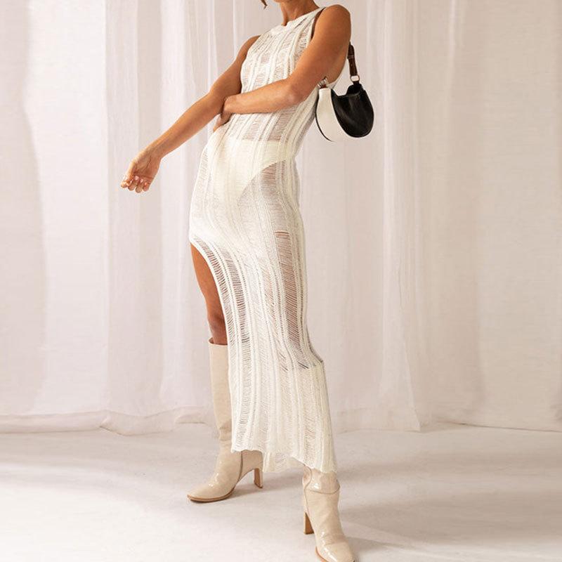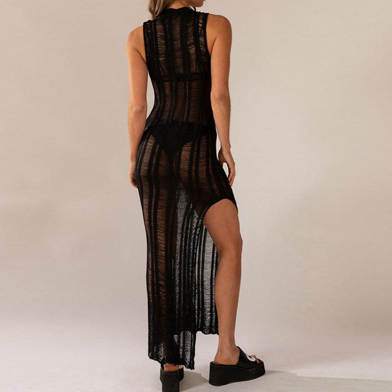 Ropa de Protección Solar Transfronteriza Nuevo Vestido Europeo y Americano Amazon Largo Suelto Color Sólido Playa Calado Tejido Blusa