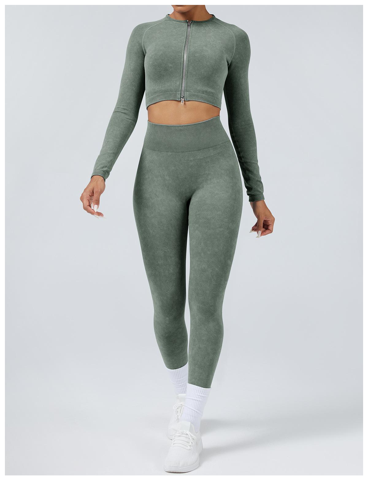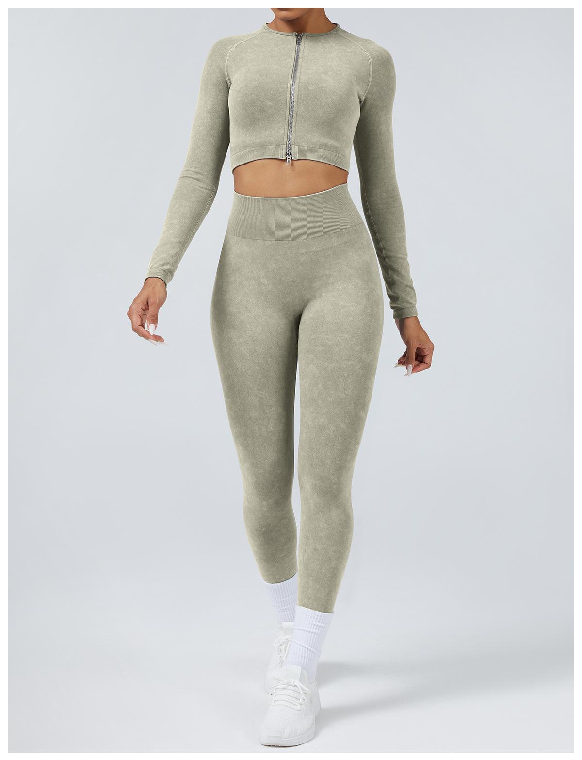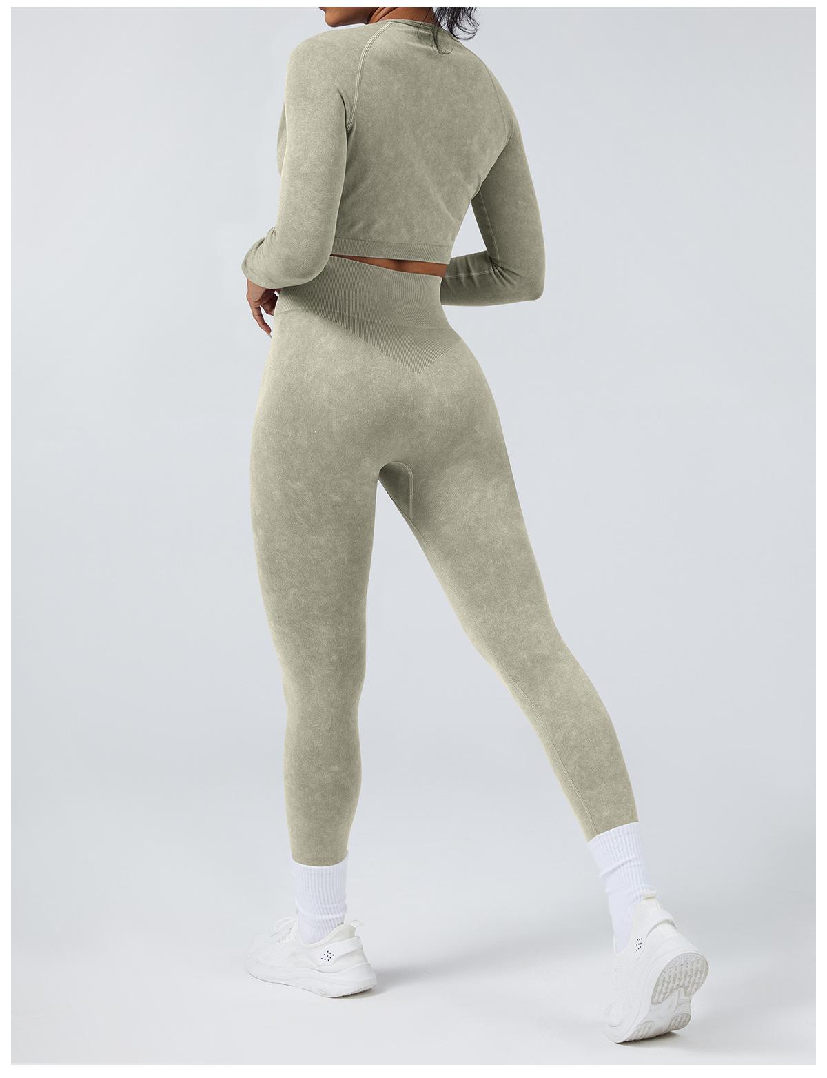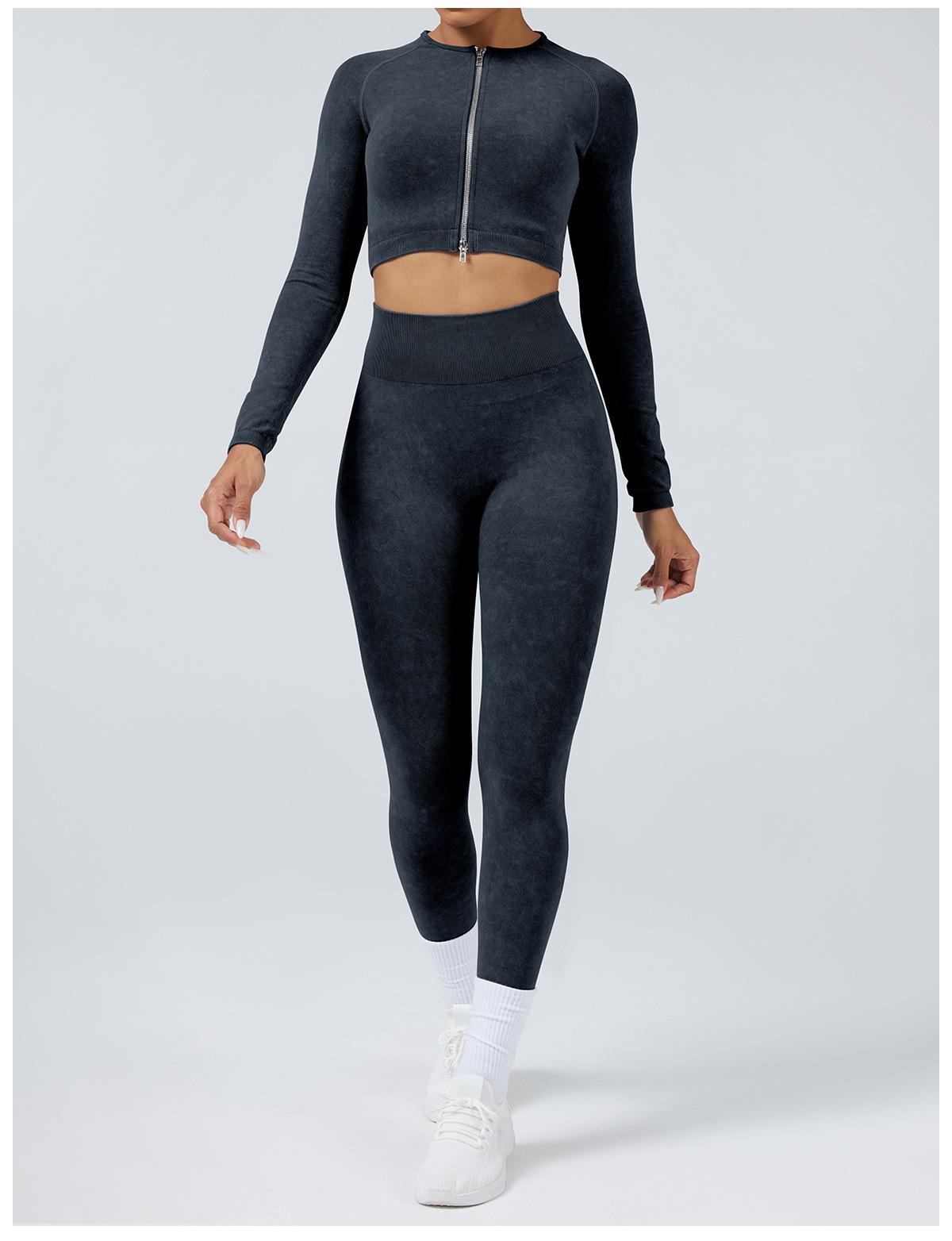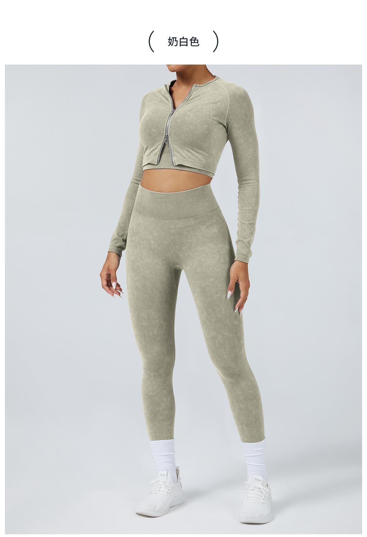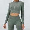 En stock, traje deportivo ajustado europeo y americano, sujetador superior para otoño e invierno, pantalones de yoga sin costuras, traje de yoga de manga larga para fitness.