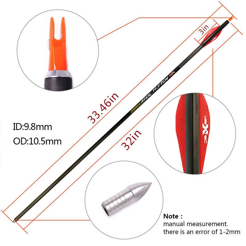 Accesorios para arco y flecha de tiro en interiores de carbono puro de 8,0/9,8 mm.