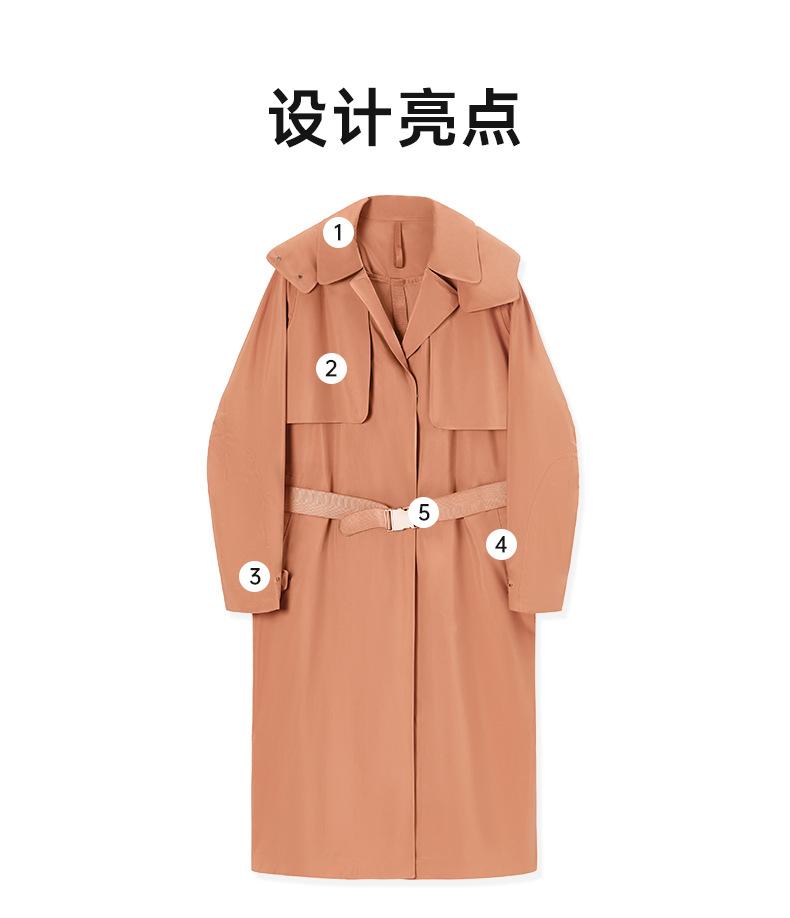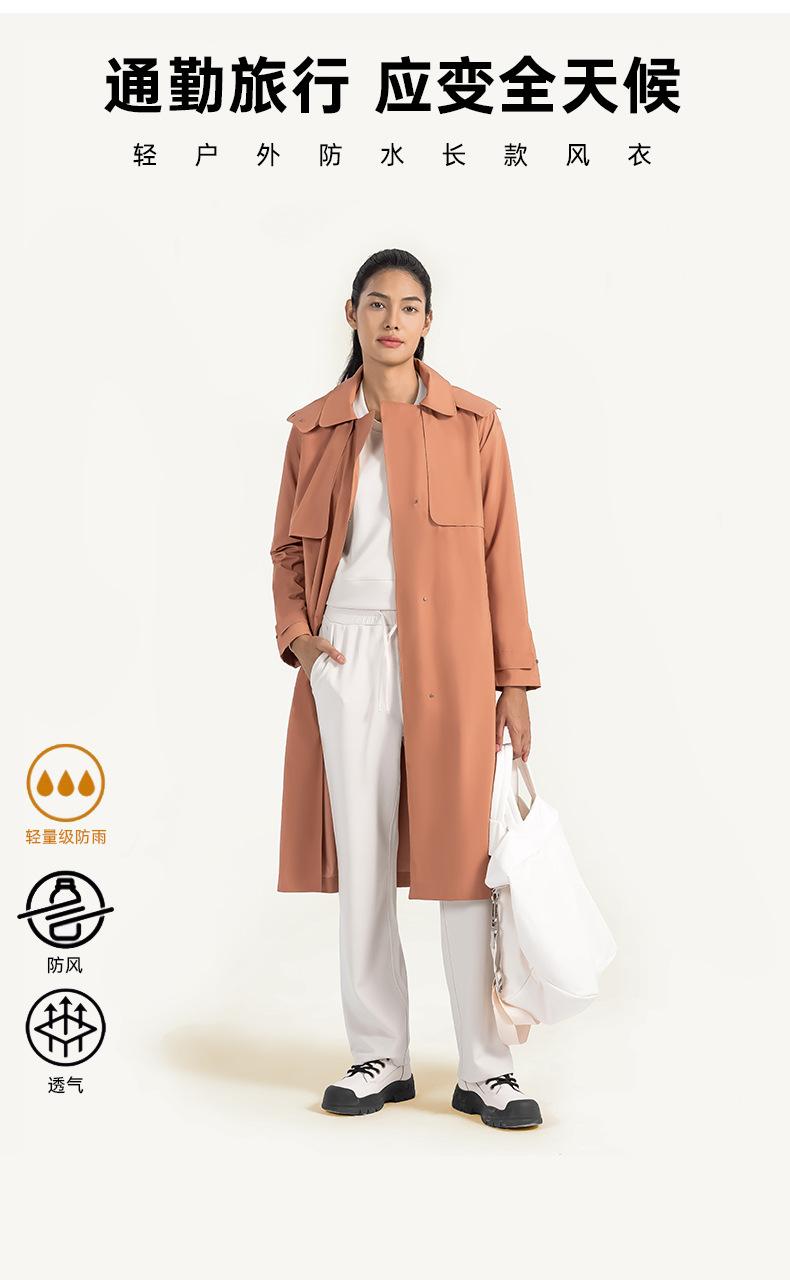 Chaqueta Impermeable y Cortavientos con Cremallera SBS Capucha Desmontable Cintura con Hebilla Solapa Cortavientos Largo para Mujer Daw014