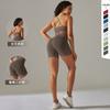 Pantalones de yoga de belleza cruzada europea y americana para mujer, deportivos, nude, con glúteos de melocotón, transpirables, elásticos, shorts, traje de yoga fitness para mujer