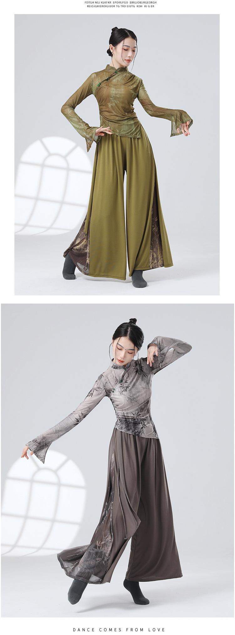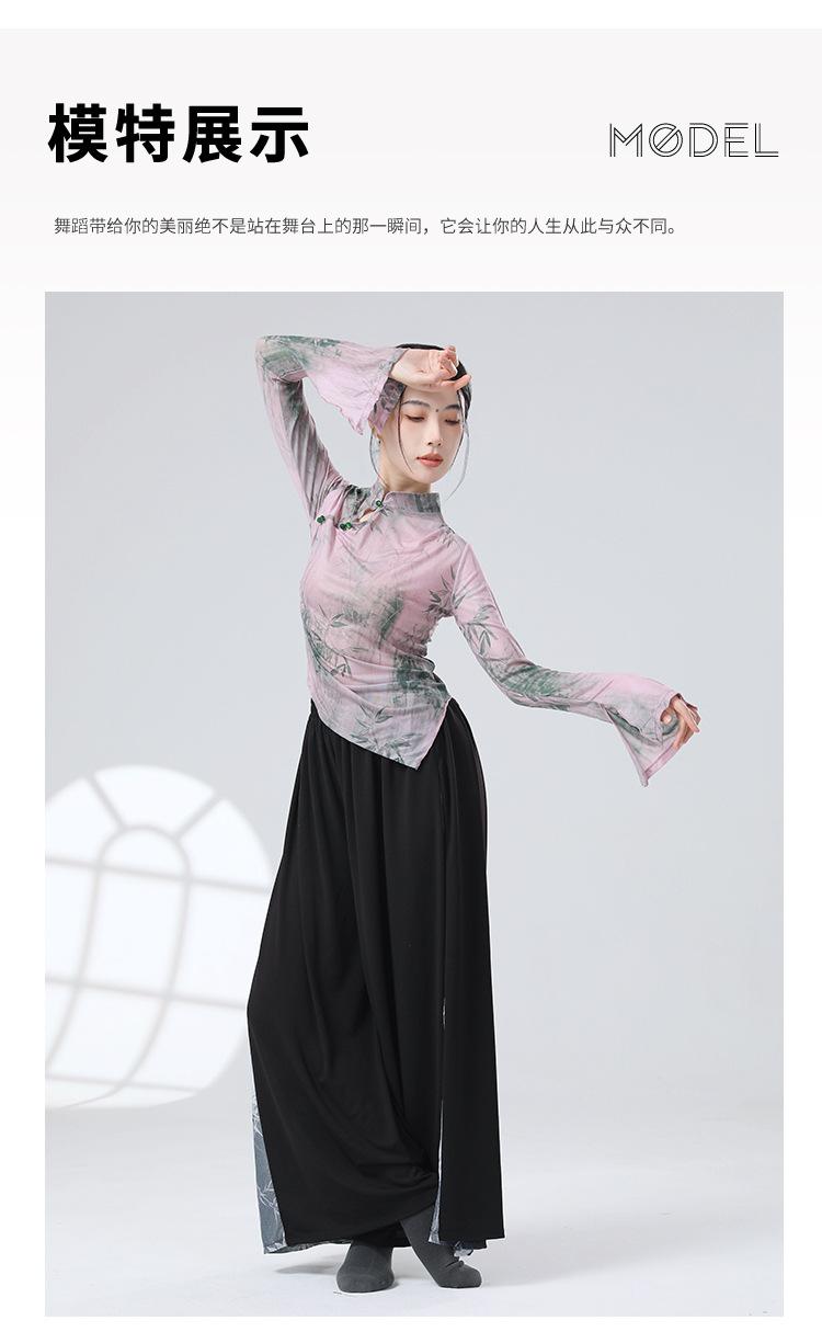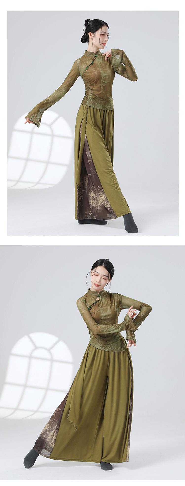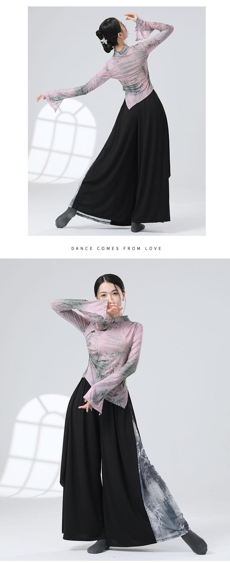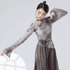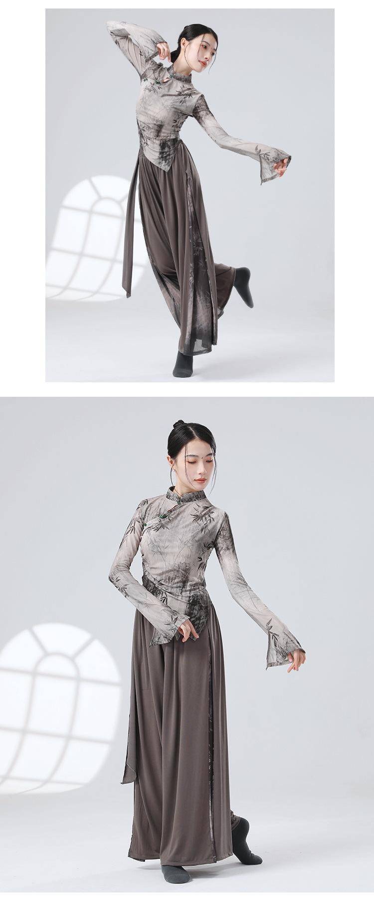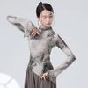 Ropa de práctica de danza moderna con mangas acampanadas y cheongsam mejorado con malla de pintura de tinta de danza clásica china nueva