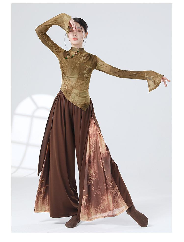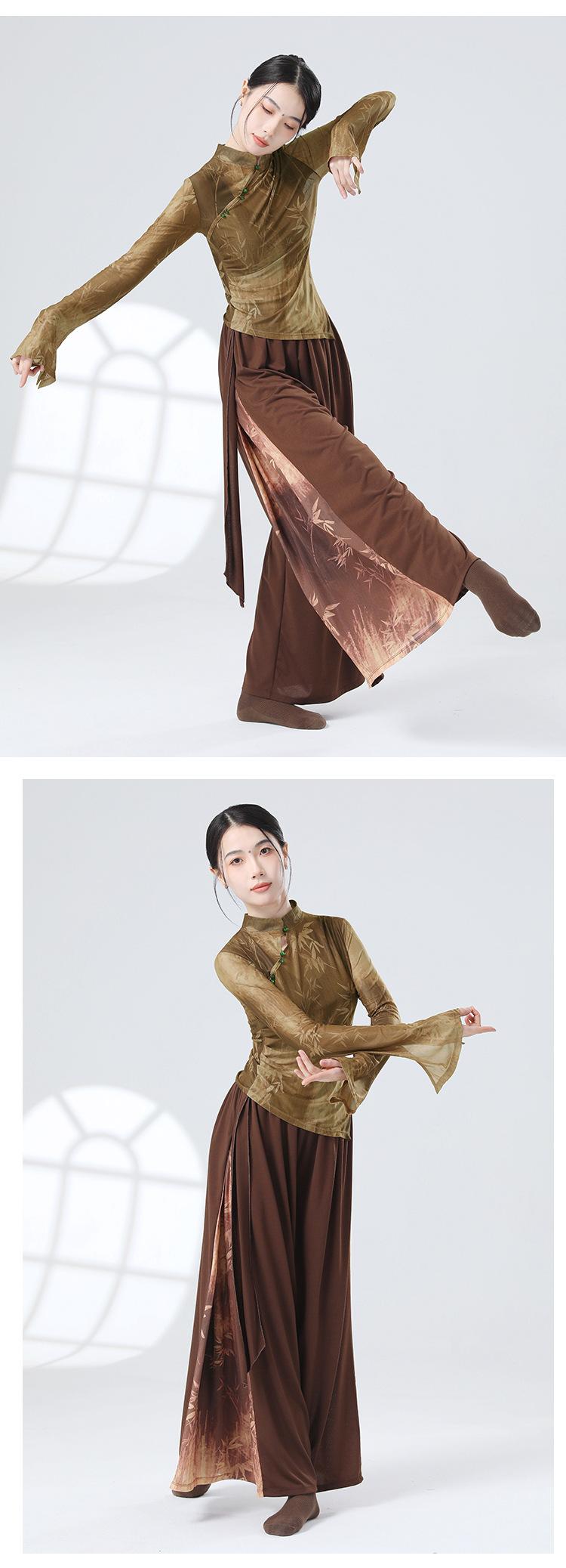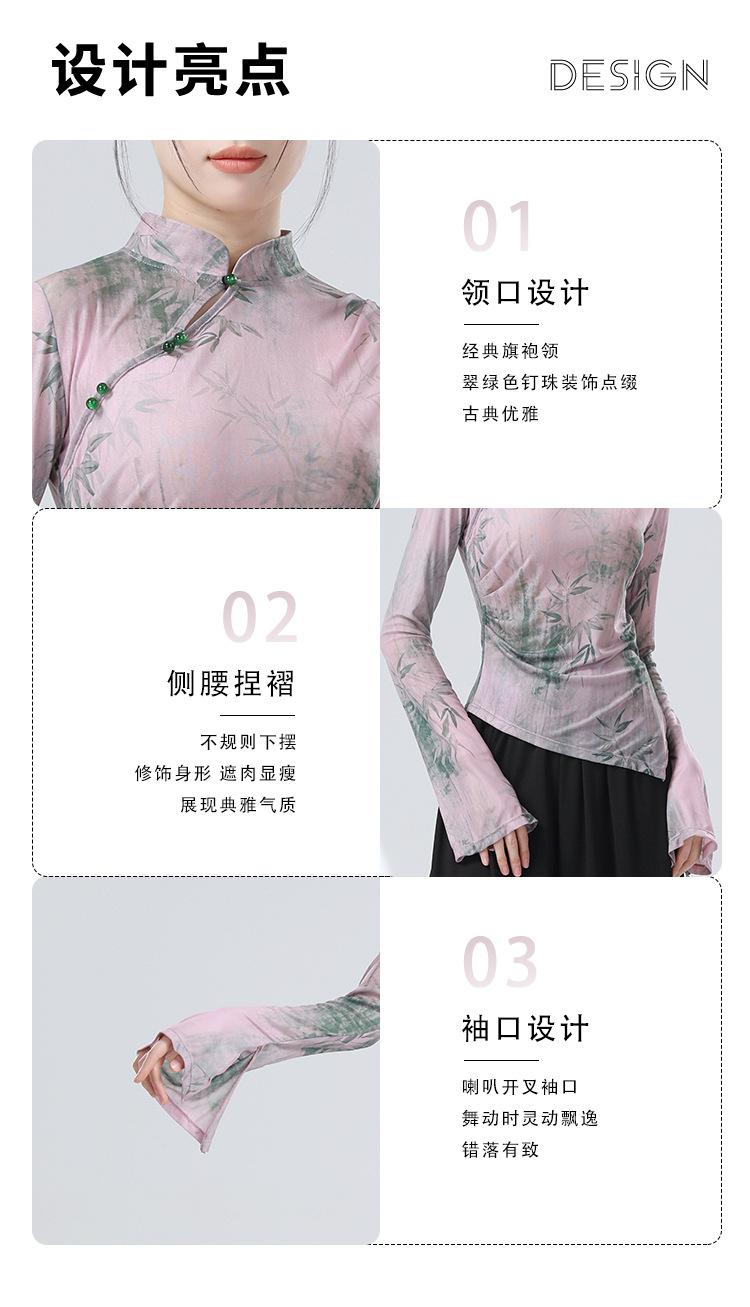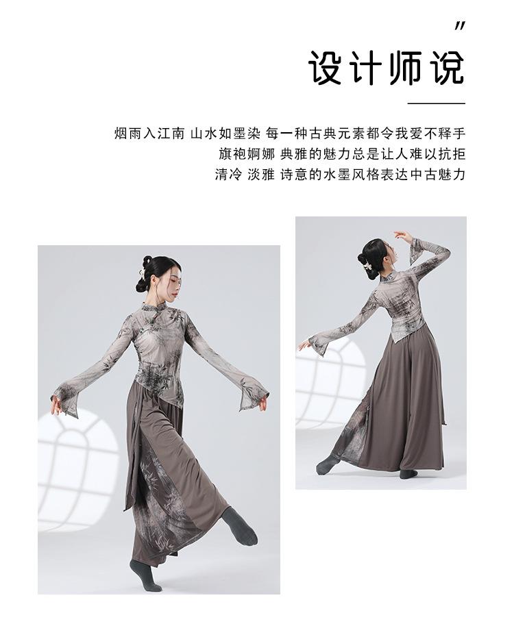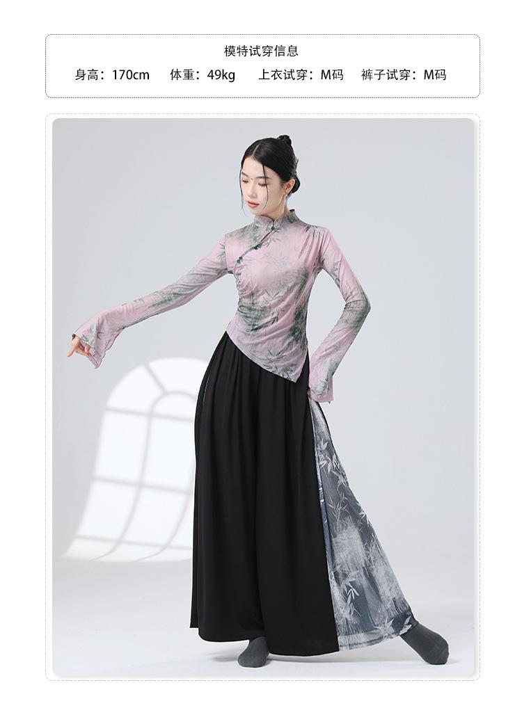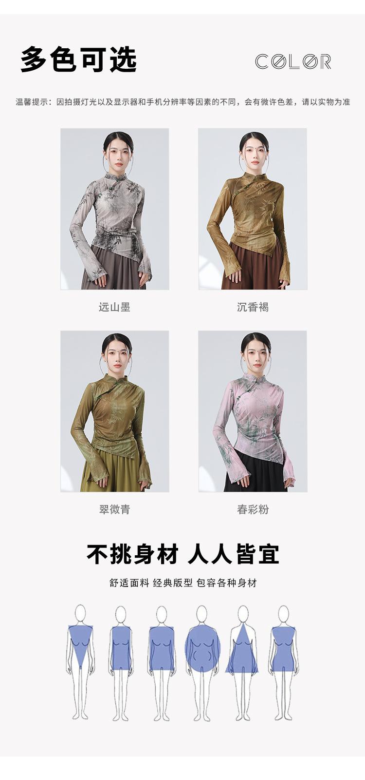 Ropa de práctica de danza moderna con mangas acampanadas y cheongsam mejorado con malla de pintura de tinta de danza clásica china nueva