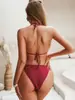 Traje de baño de dos piezas para mujer, estilo europeo y americano, sexy, con tirantes y espalda descubierta, estilo bikini, novedad de 2024