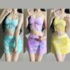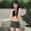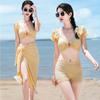 Fabricantes vendiendo bikini nuevo estilo japonés y coreano sexy sin espalda pecho pequeño fruncido traje de baño de falda dividida para mujer traje de tres piezas