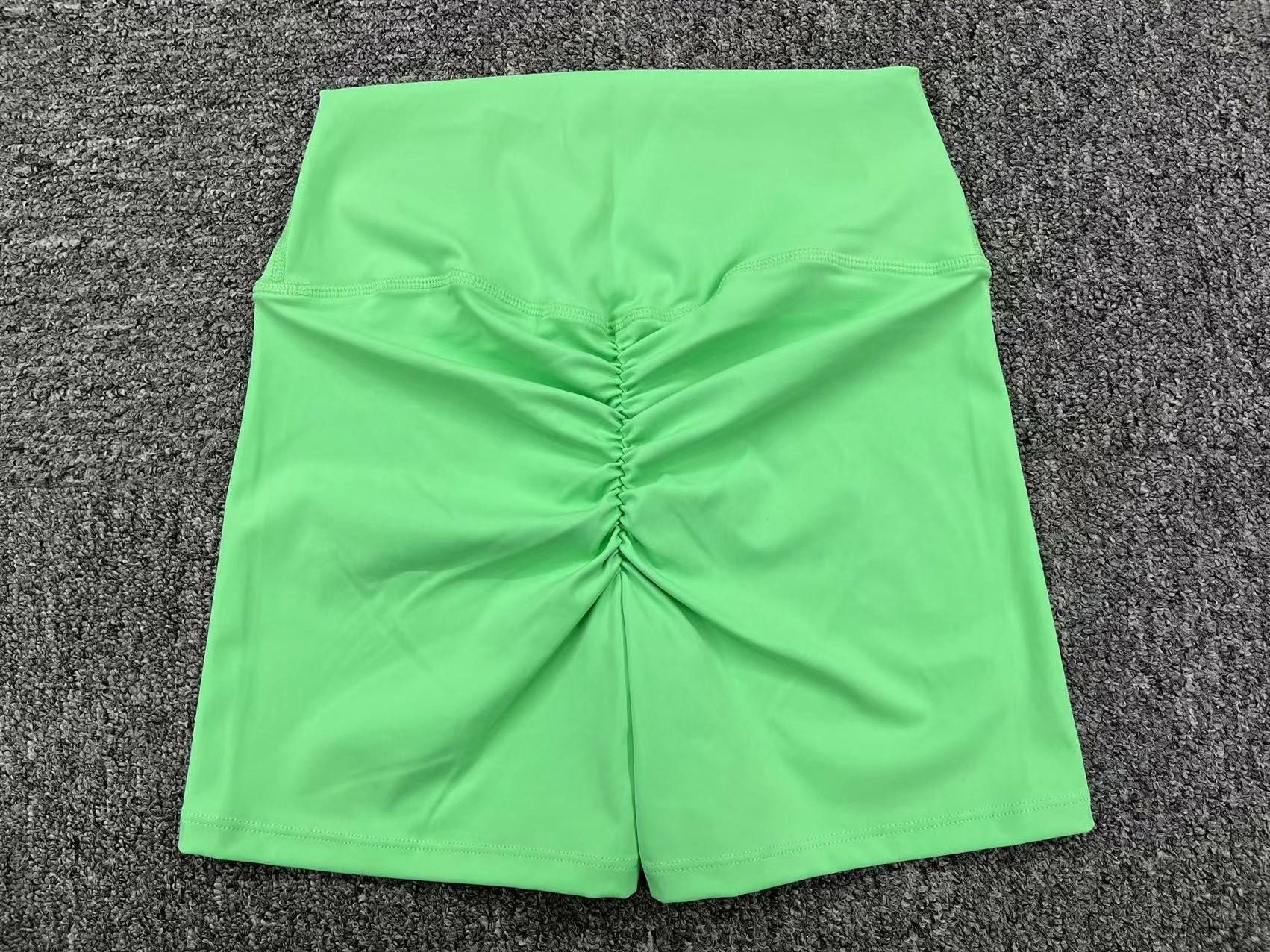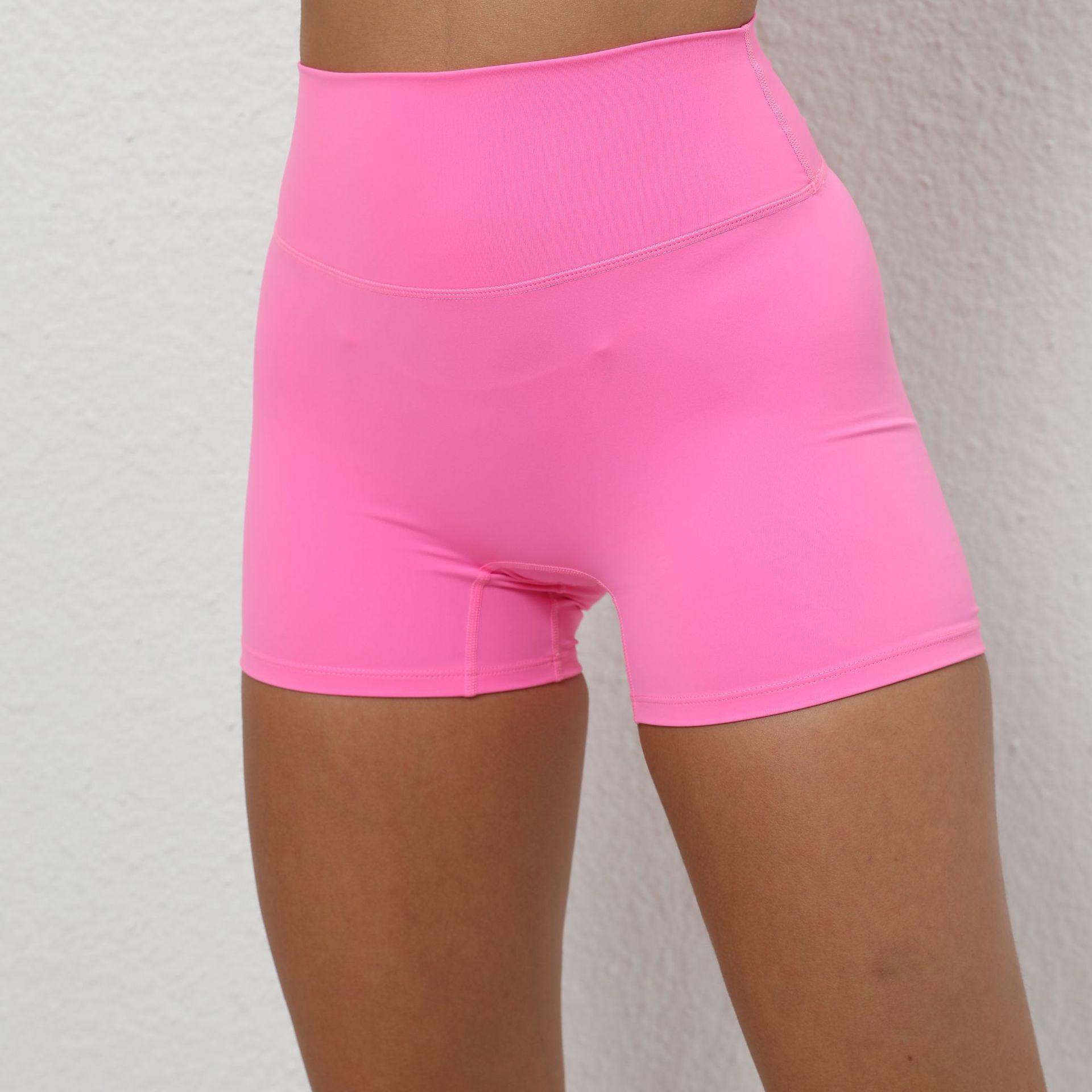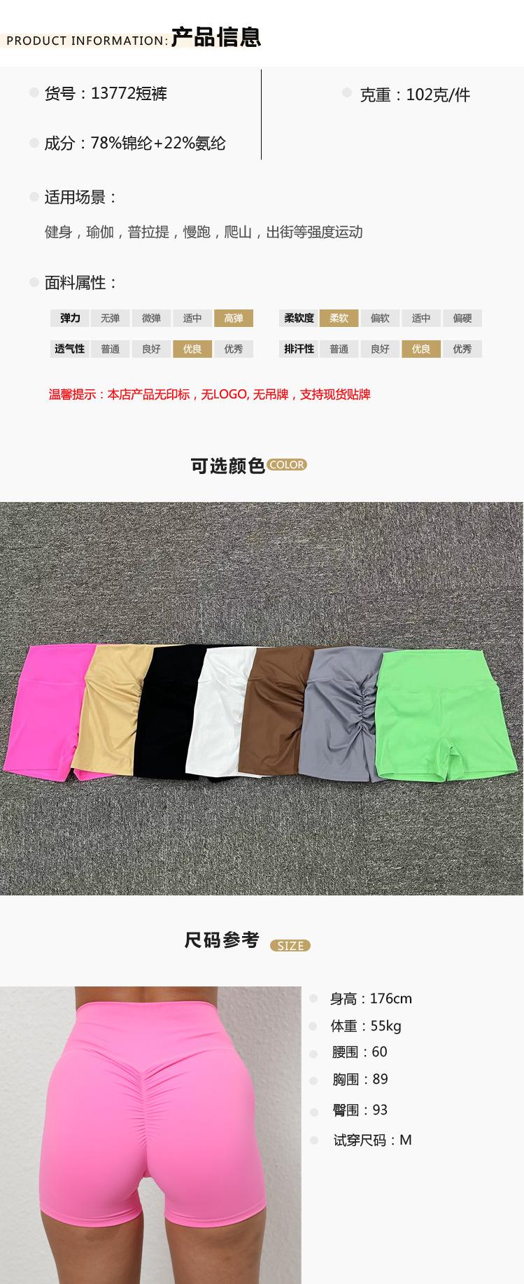 Pantalones cortos deportivos con pliegues de color melocotón para mujer, de estilo europeo y americano, ajustados, de cintura alta, para correr, de secado rápido, para yoga, de verano