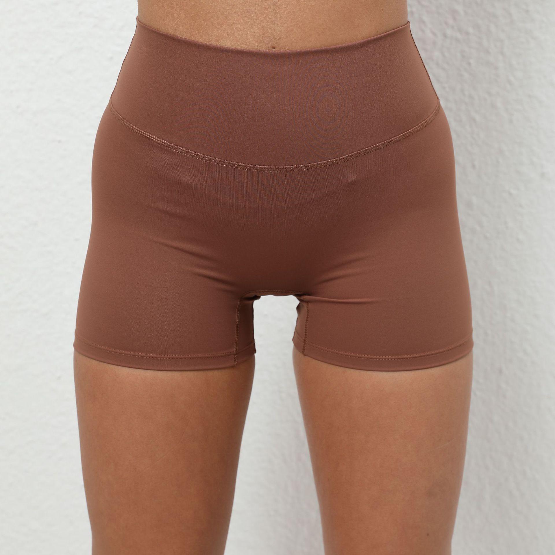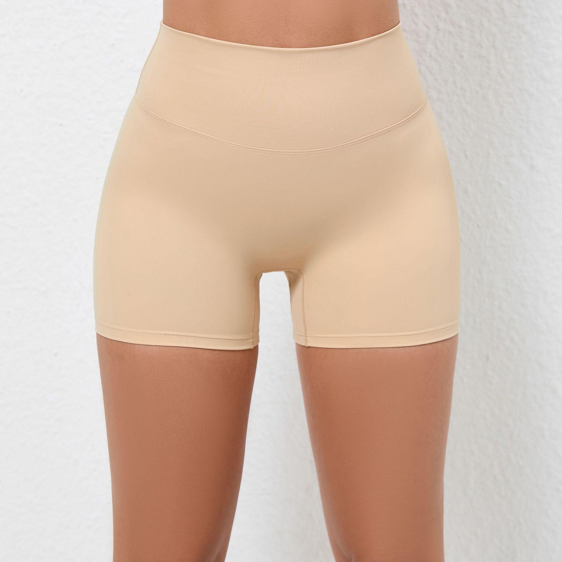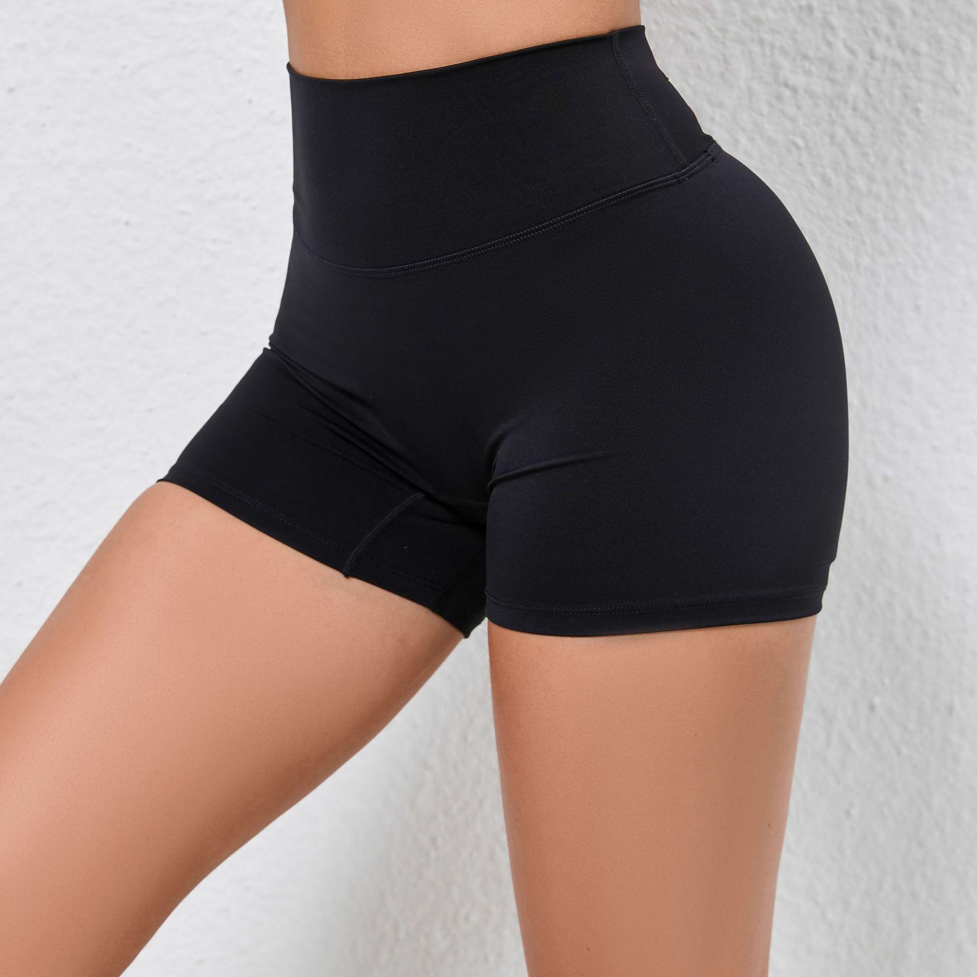 Pantalones cortos deportivos con pliegues de color melocotón para mujer, de estilo europeo y americano, ajustados, de cintura alta, para correr, de secado rápido, para yoga, de verano