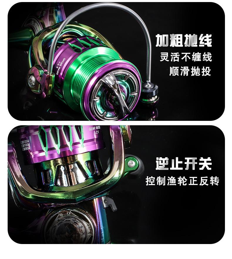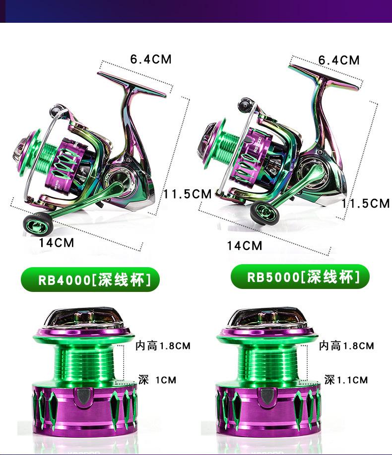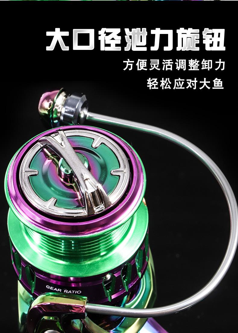 Carrete de pesca metálico de colores, carrete de pesca, rueda de lanzamiento remoto, rueda de poste de mar, ancla, equipo de pesca, rueda giratoria, venta al por mayor transfronteriza