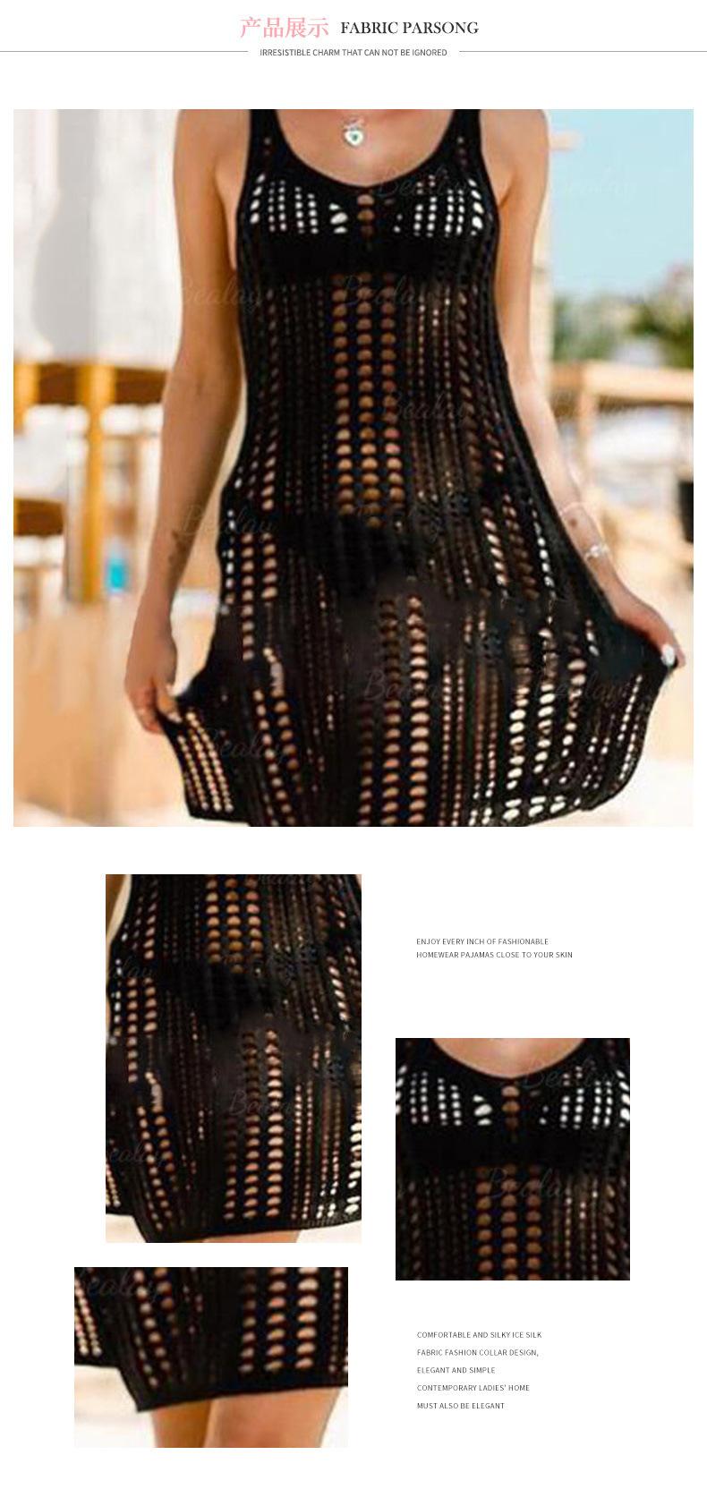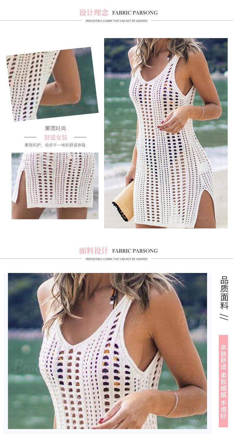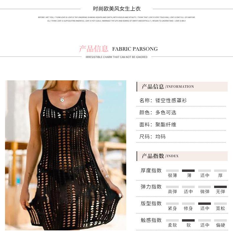 Traje de Baño Bikini Europeo y Americano para Mujer Transfronterizo Blusa Tejida Calada Traje de Protección Solar Falda Slip Blusa de Playa