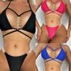 Bikini Tanga Sexy Nuevo Europeo y Americano 2025 de Tirantes de Color Puro Traje de Baño Bikini Amazon Transfronterizo