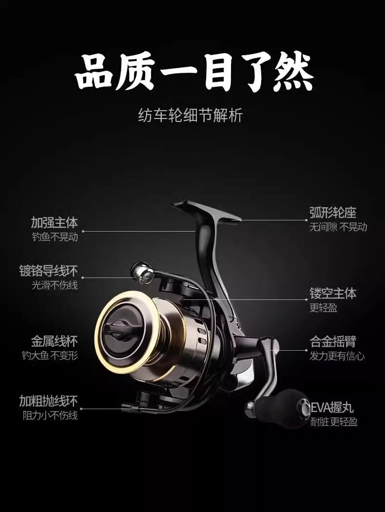 Rueda de pesca, rueda giratoria de metal, caña de mar, caña de lanzamiento, micro rueda de metal, caña de mar, caña de mano, rueda de línea de pesca, rueda de pesca Luya genuina