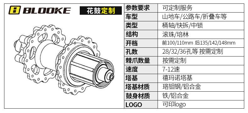 Buje de bicicleta de montaña BLOOKE de seis garras, 4 rodamientos, 32 orificios, freno de disco de 7-11 velocidades, buje de liberación rápida, 6 garras, 114 anillos |