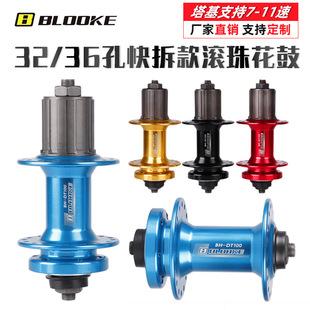 Buje de bola para bicicleta de montaña BLOOKE, 32 y 36 orificios, buje de freno de disco de seis clavos de liberación rápida, eje de 7 a 11 velocidades |