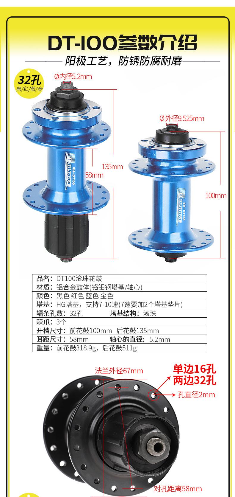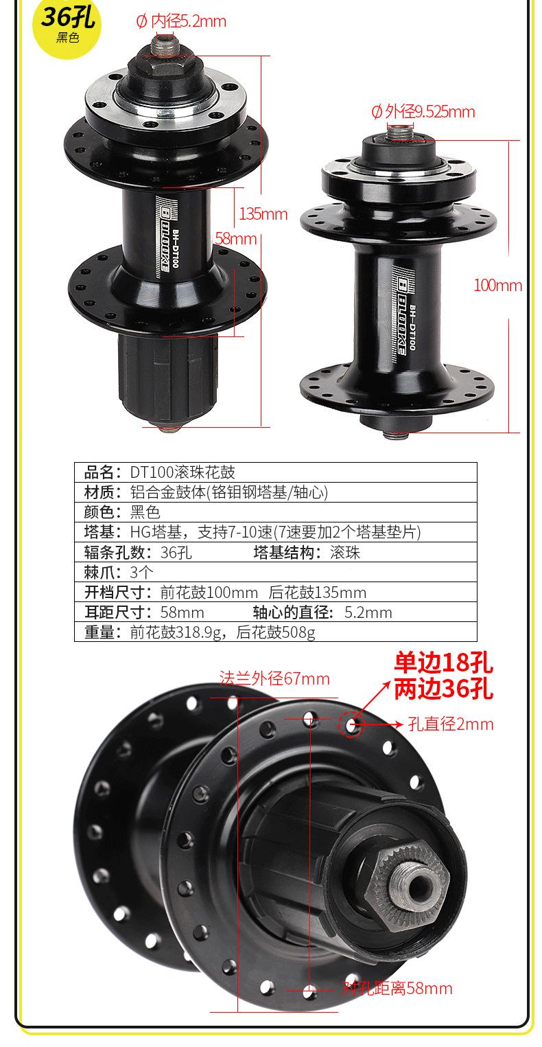 Buje de bicicleta de montaña BLOOKE con freno de disco de 2 rodamientos y buje de rodamiento de liberación rápida de 32 orificios |