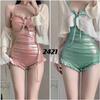 Traje de Baño de Hada 2025 para Mujer de Una Pieza Bóxer Conservador Cubre Vientre de Dos Piezas Delgado Cintura Alta Traje de Baño para Aguas Termales