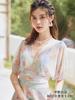 Traje de baño francés para vacaciones, moda femenina, floral, sexy, con cuello en V, para aguas termales, cintura ajustada, adelgazante, conservador.