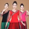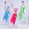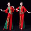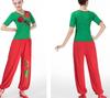 Traje de Danza Étnica de Danza Cuadrada de Significado Profundo para Mujeres, Traje de Actuación de Danza con Abanicos para Edad Media y Adultos Mayores, Traje de Danza Yangko, Traje de Actuación de Una Flor