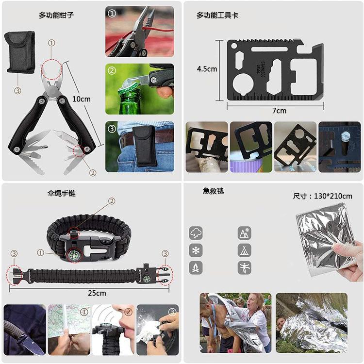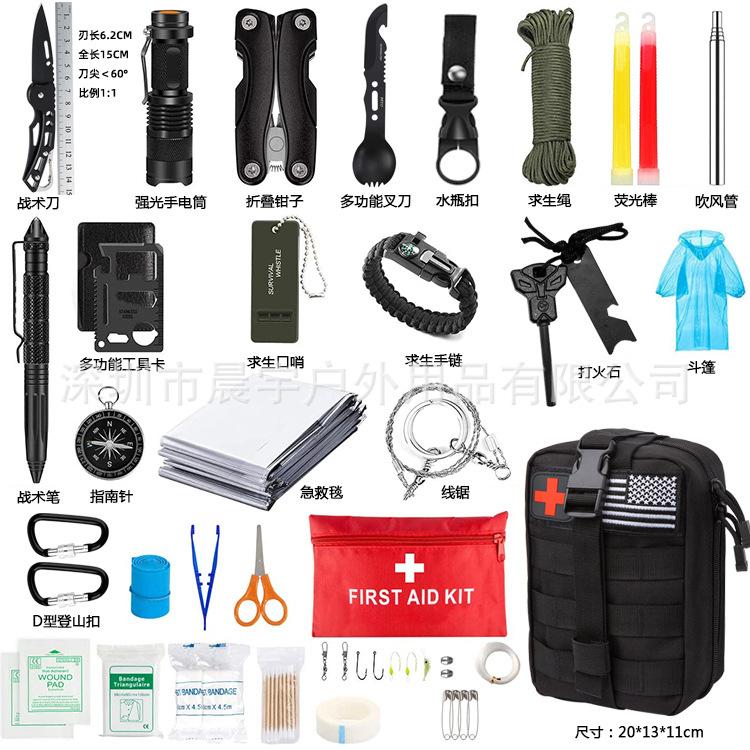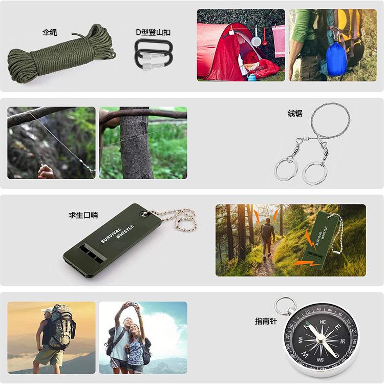 Equipo SOS para viajes al aire libre, acampada, traje de supervivencia, botiquín de primeros auxilios multifunción para exteriores, suministros de montañismo