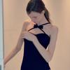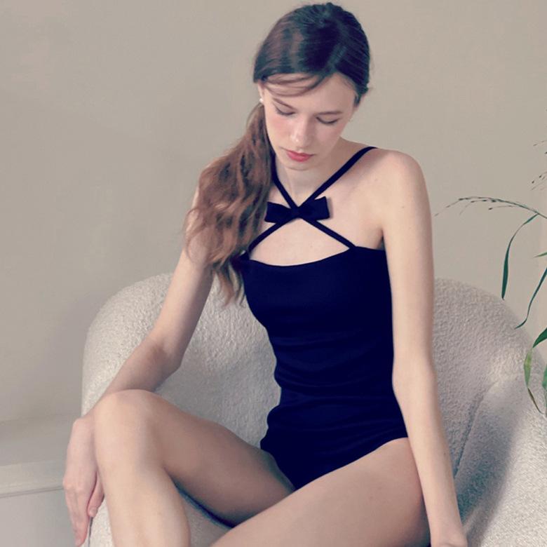 Traje de baño de una pieza para mujer, nuevo y sexy, bikini de una pieza, traje de baño europeo y americano, traje de baño de color sólido, bikini con tirantes