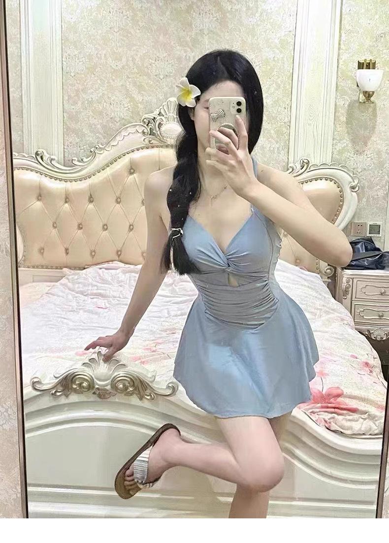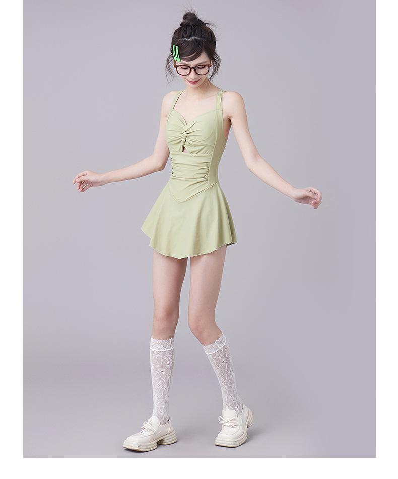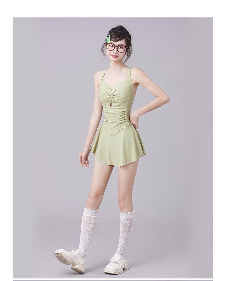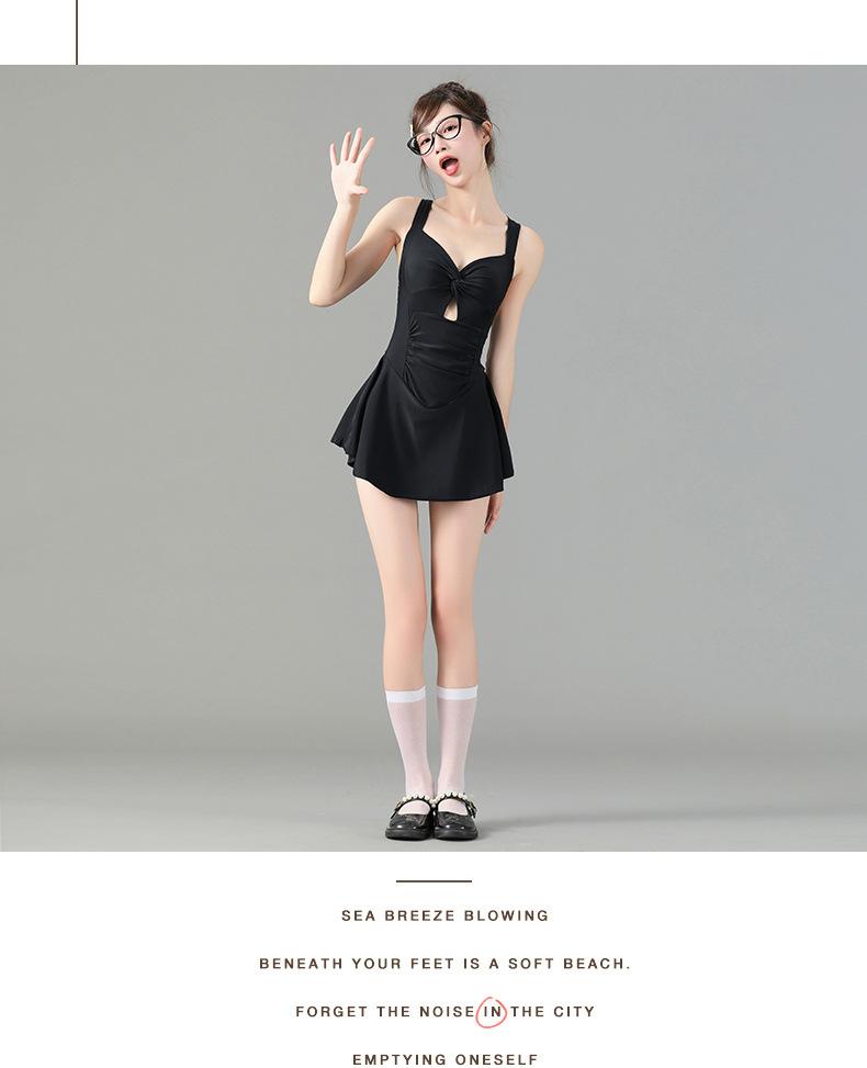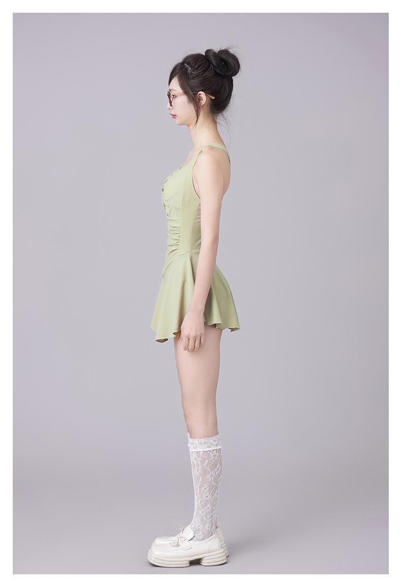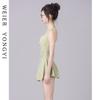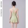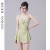 Traje de Baño Nuevo 2025 para Mujer de Una Pieza Conservador Cubre Vientre Adelgazante Estudiante Fresco Color Sólido Estilo Falda Pecho Pequeño Traje de Baño para Aguas Termales