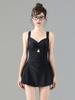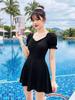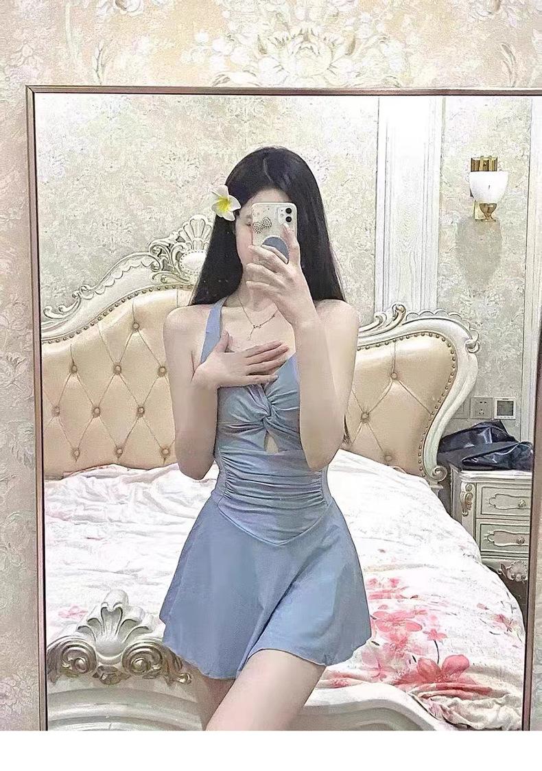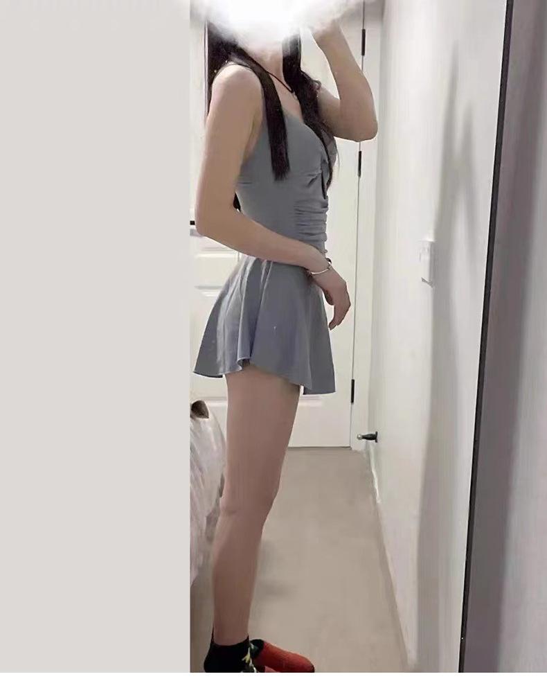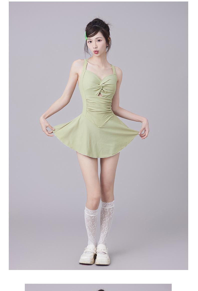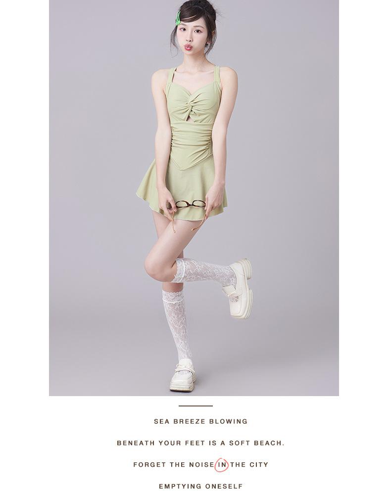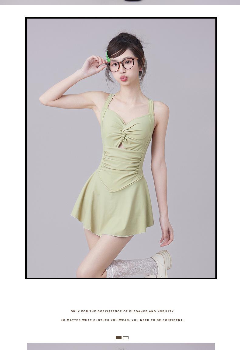 Traje de Baño Nuevo 2025 para Mujer de Una Pieza Conservador Cubre Vientre Adelgazante Estudiante Fresco Color Sólido Estilo Falda Pecho Pequeño Traje de Baño para Aguas Termales