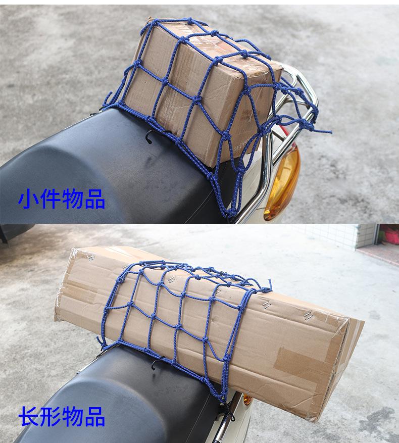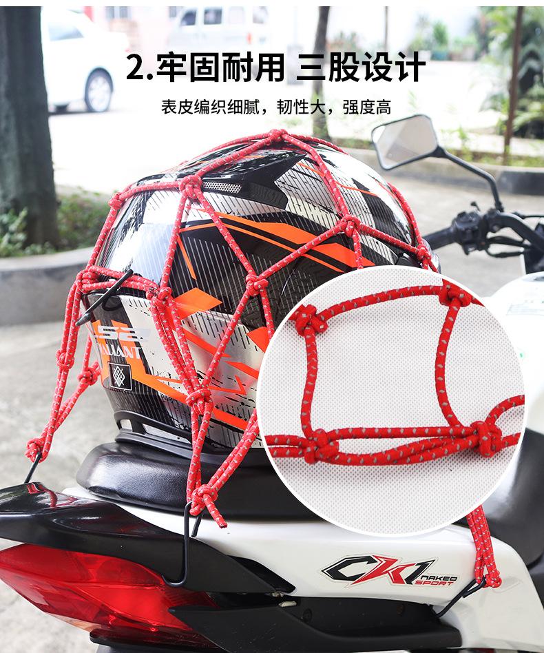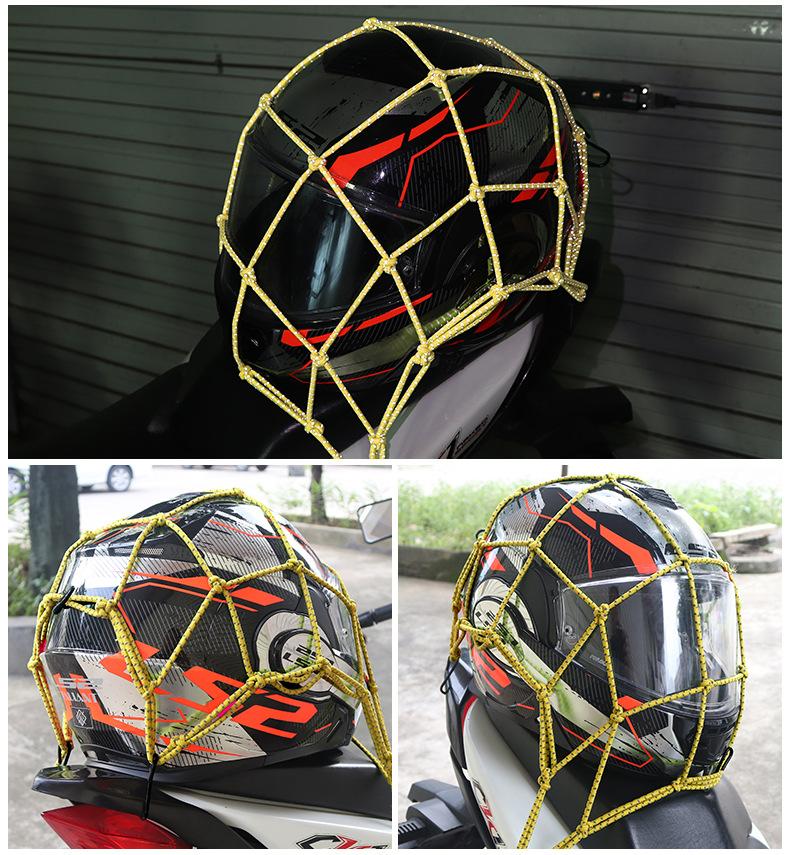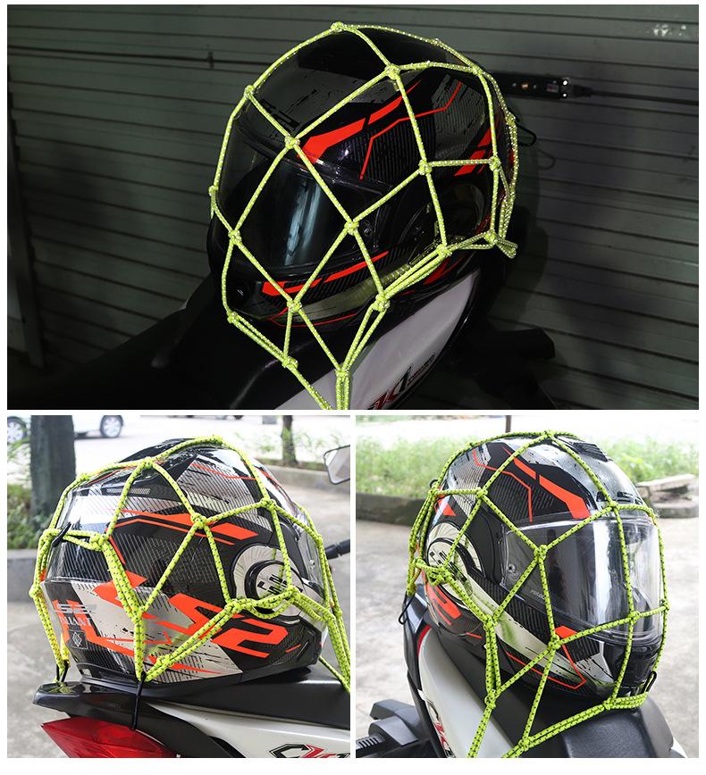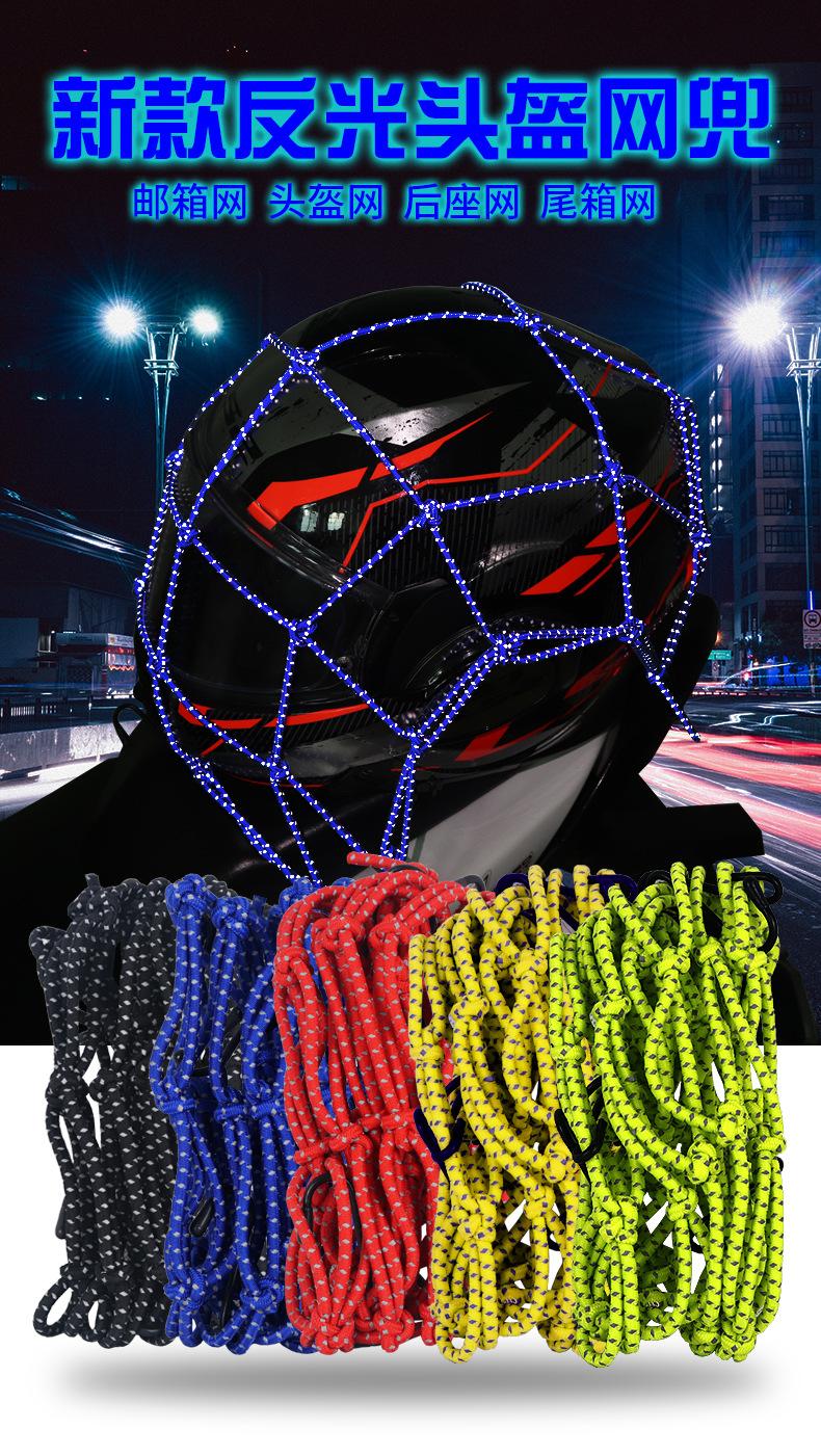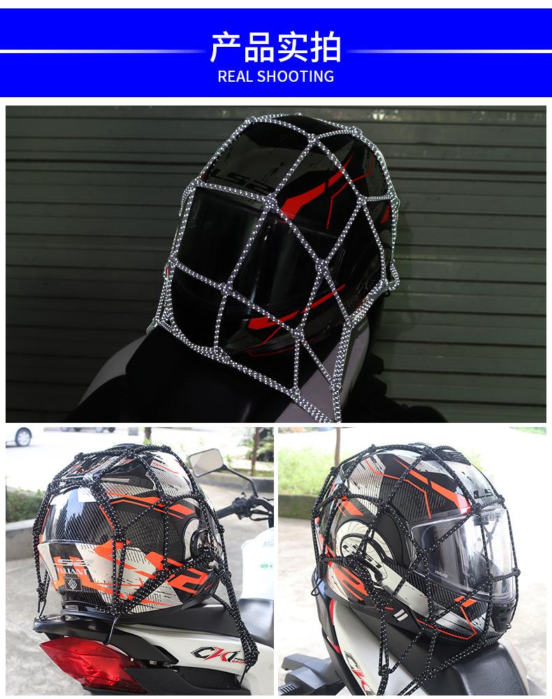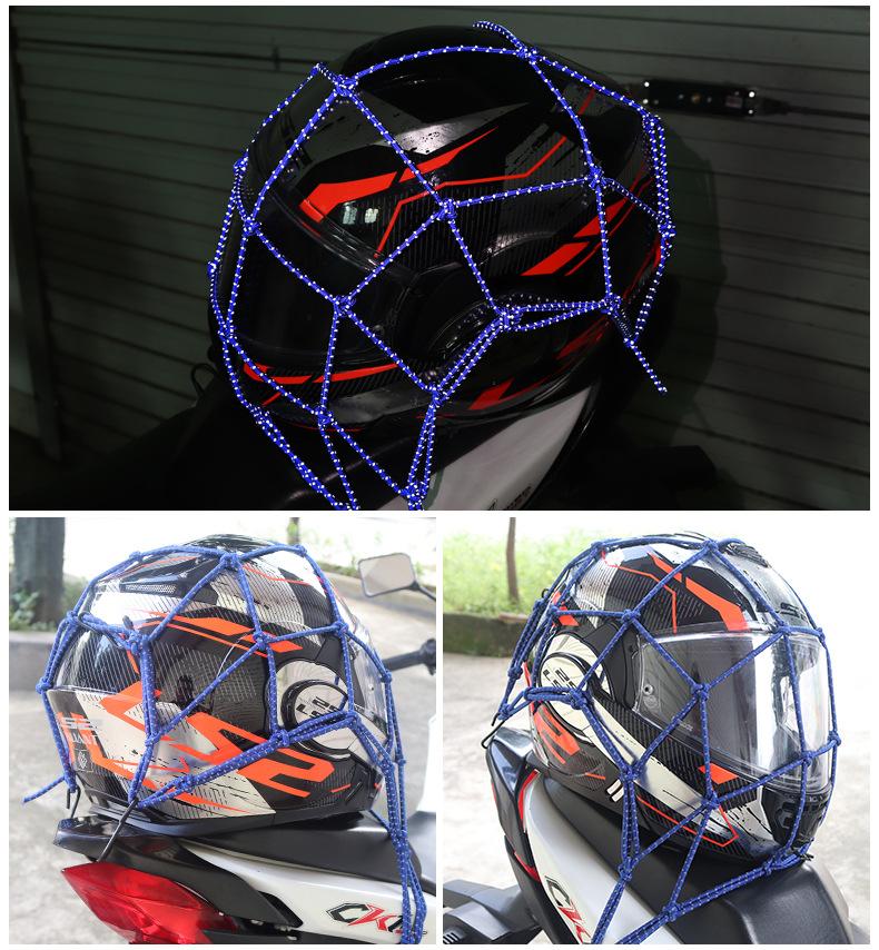 Red para equipaje de motocicleta, bolsa para artículos diversos del casco, bolsa de red para el tanque de combustible, correa de red elástica, bolsa de red reflectante trasera del automóvil, cuerda de red por la noche