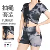 Conjunto de Shorts de Yoga y Fitness de Manga Corta, Jacquard Tie-Dye Ajustado para Levantar Glúteos, Moldeador y Adelgazante, Se Puede Usar Afuera, de Cintura Alta
