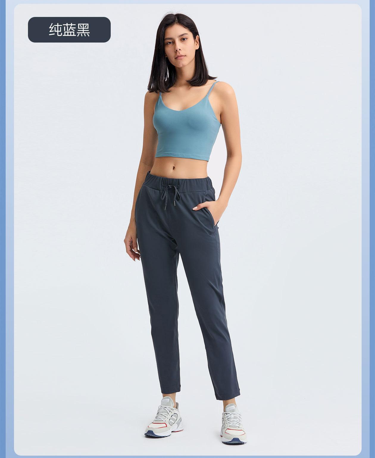Pantalones de Yoga Rectos Sueltos Nuevos Transfronterizos Cintura con Cordón Deportivo Casual Elástico Pantalones Nueve Puntos para Mujer Dl081