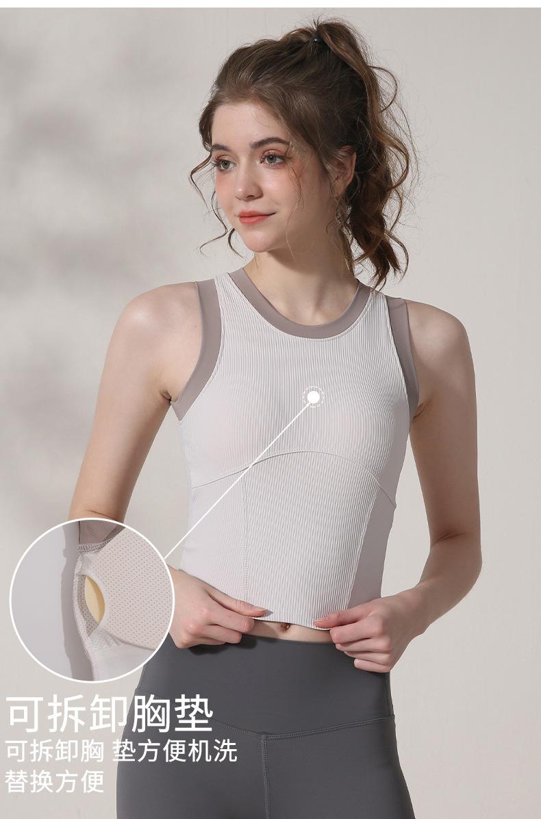 Ropa de yoga con almohadilla para el pecho, chaleco de canalé de verano para mujer, ropa interior deportiva, ropa exterior de entrenamiento para correr, top de fitness