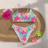 Traje de baño transfronterizo nuevo 2024 para mujer, bikini sexy con tirantes y estampado fresco europeo y americano, nuevo color