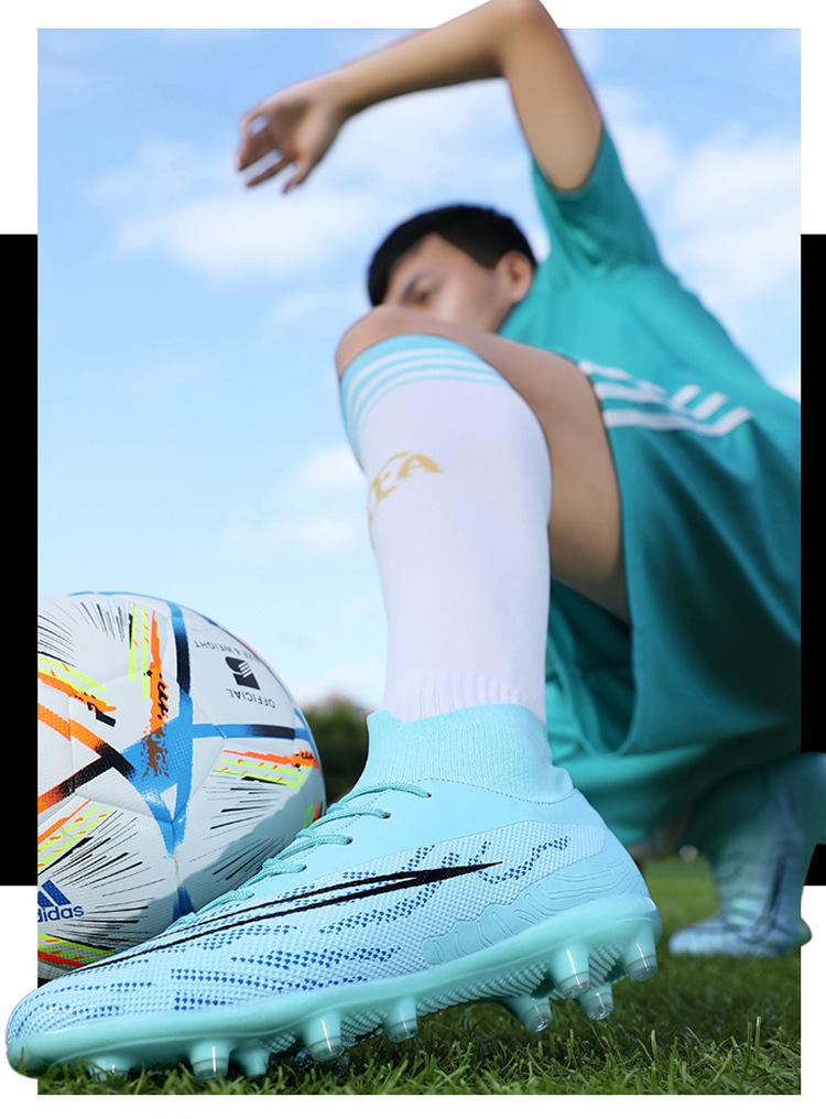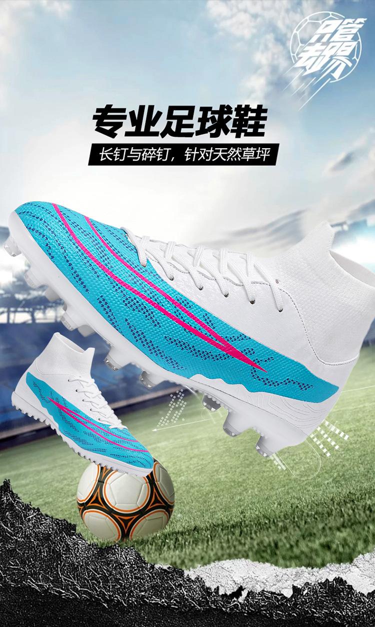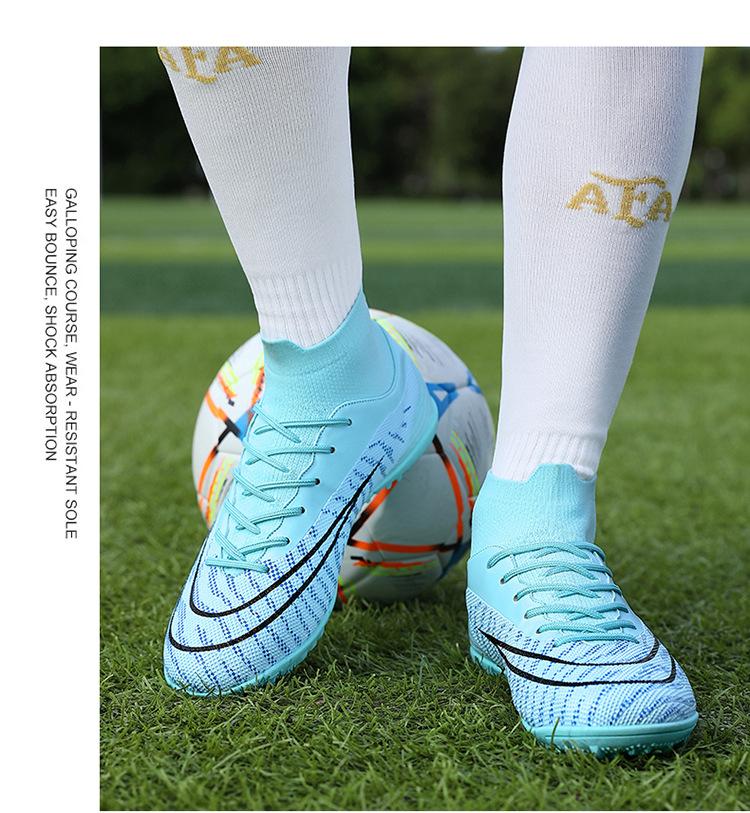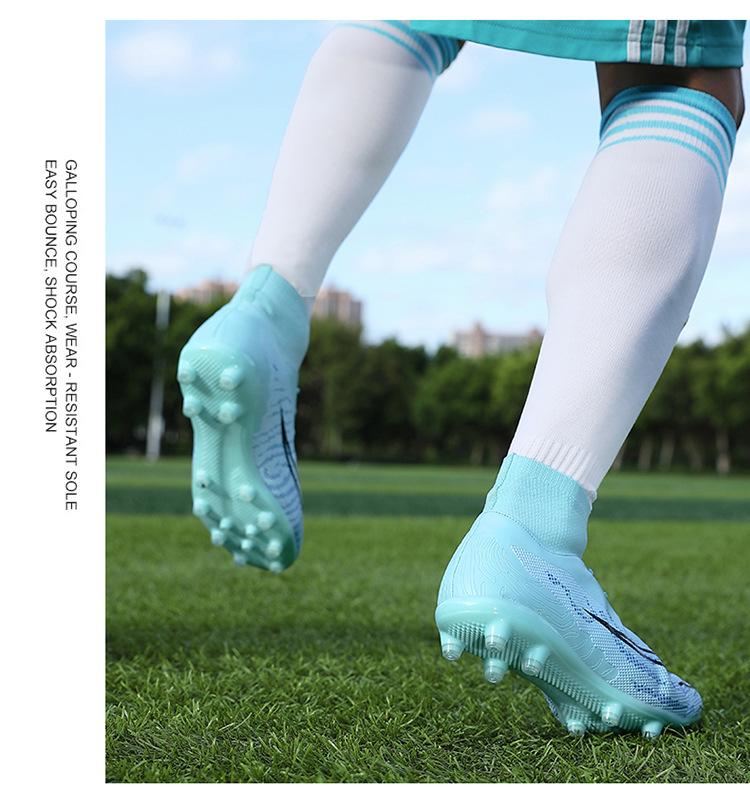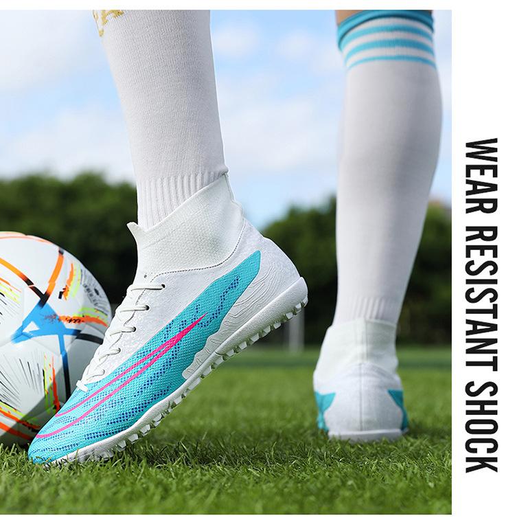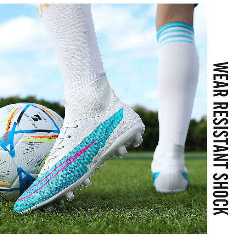 Nuevas botas de fútbol transfronterizas para hombre, antideslizantes, de competición profesional, de media pantorrilla, para entrenamiento deportivo, AG, clavo largo, TF, clavo roto.