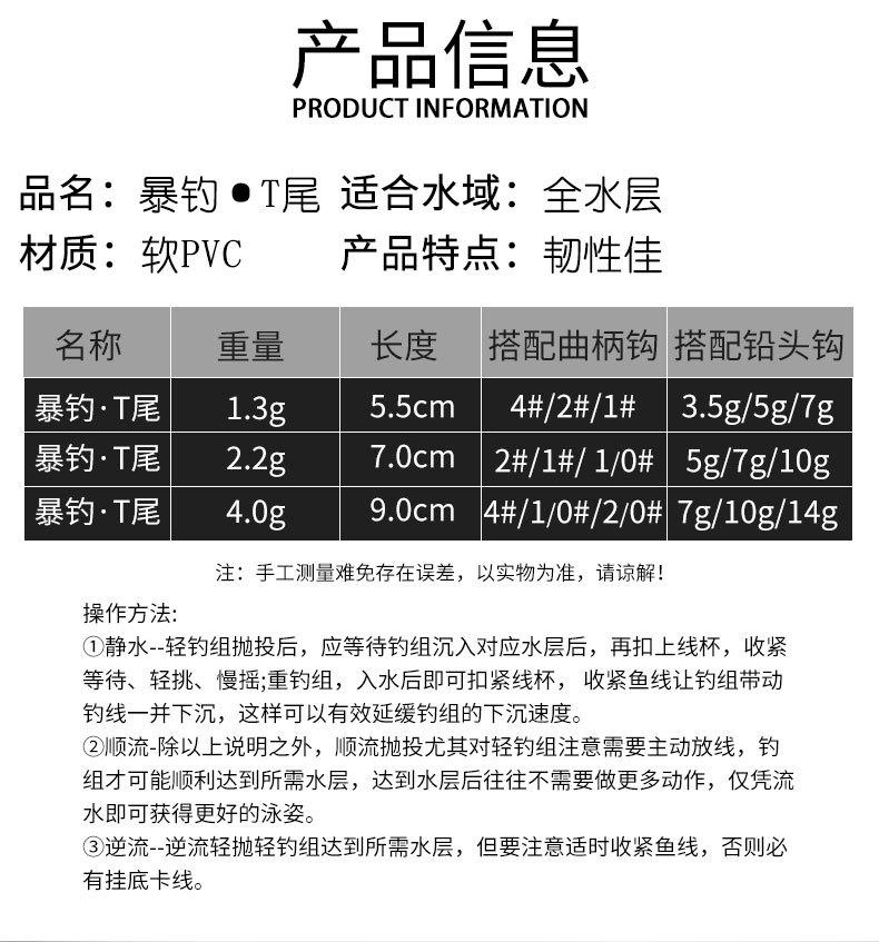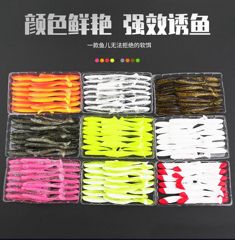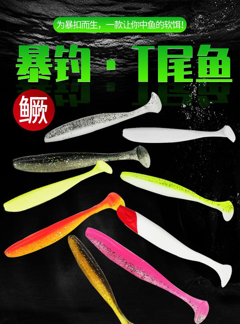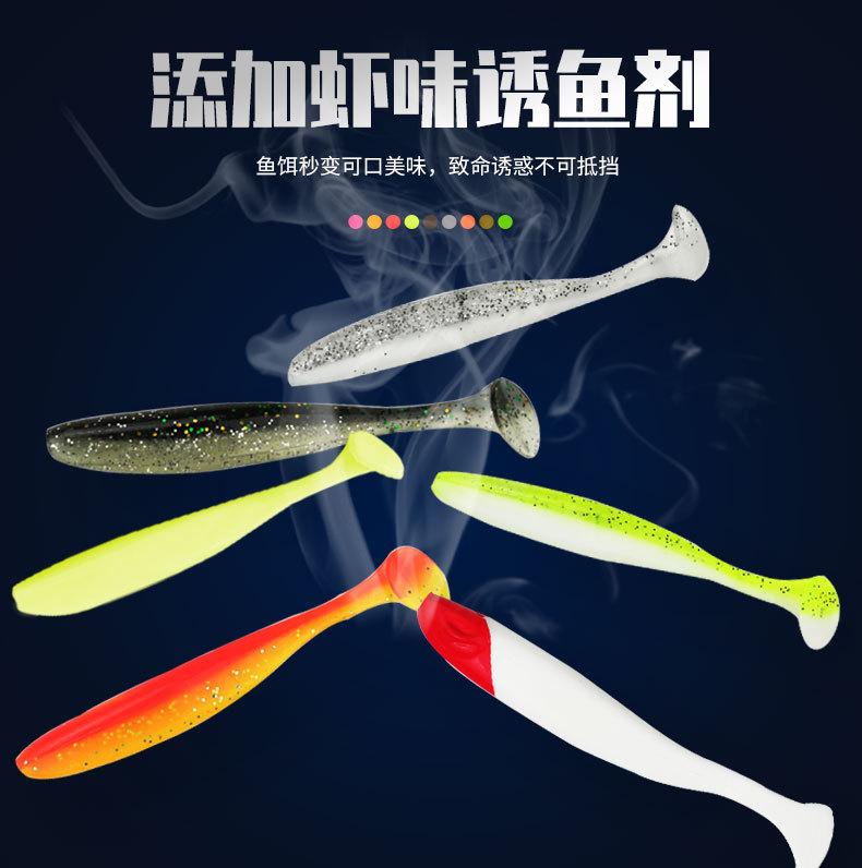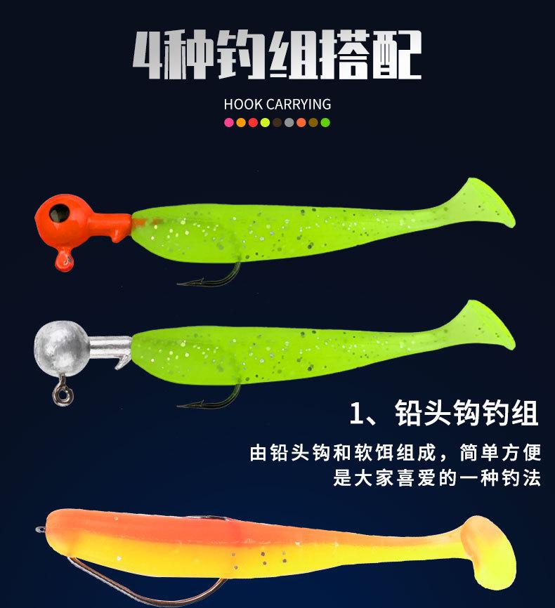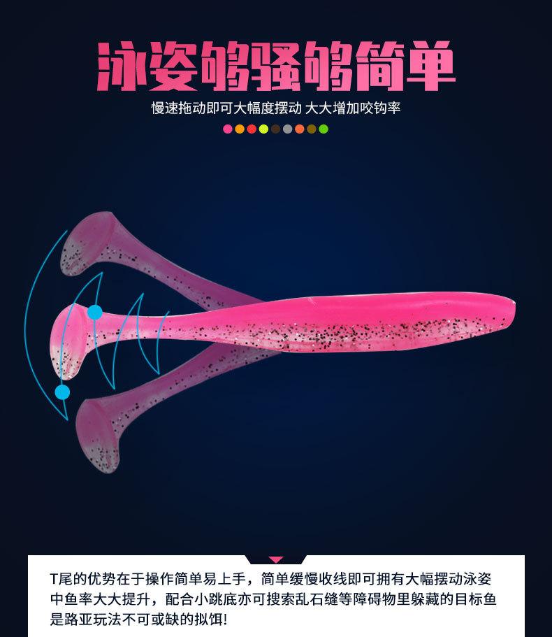 Juego de anzuelos de plomo con gusanos blandos Luya Bait, cebo blando de cola en T para peces, cebo falso para lubina, agua dulce y salada.