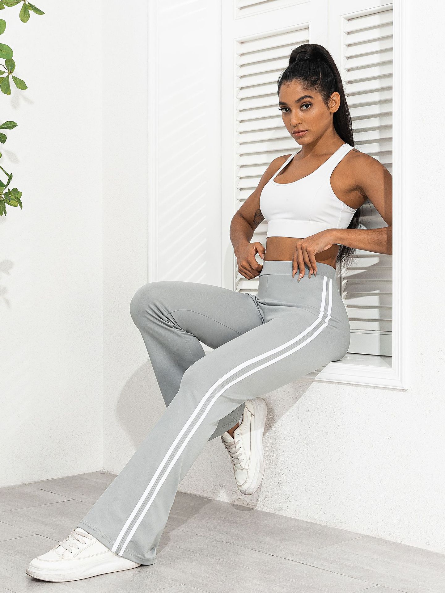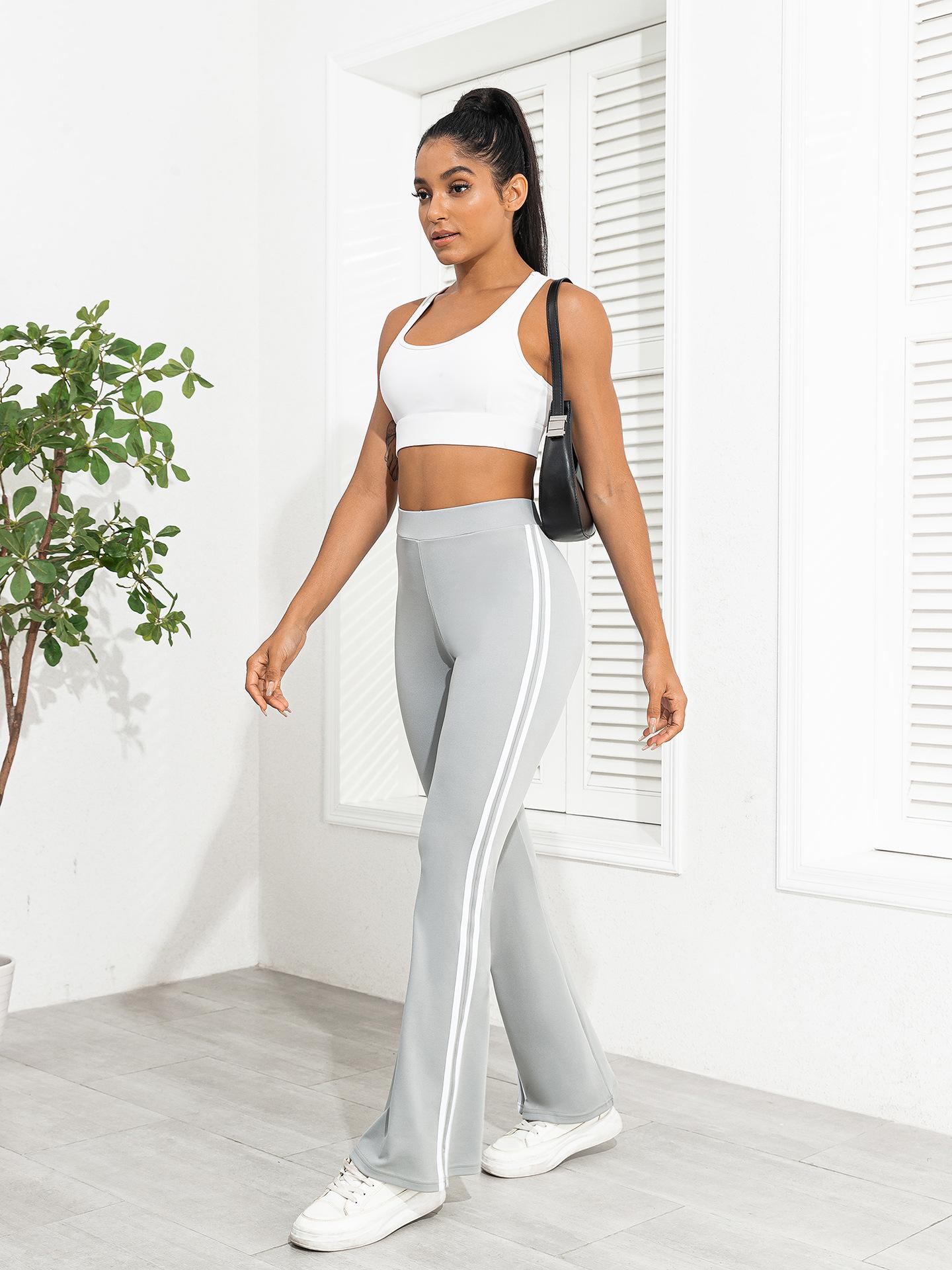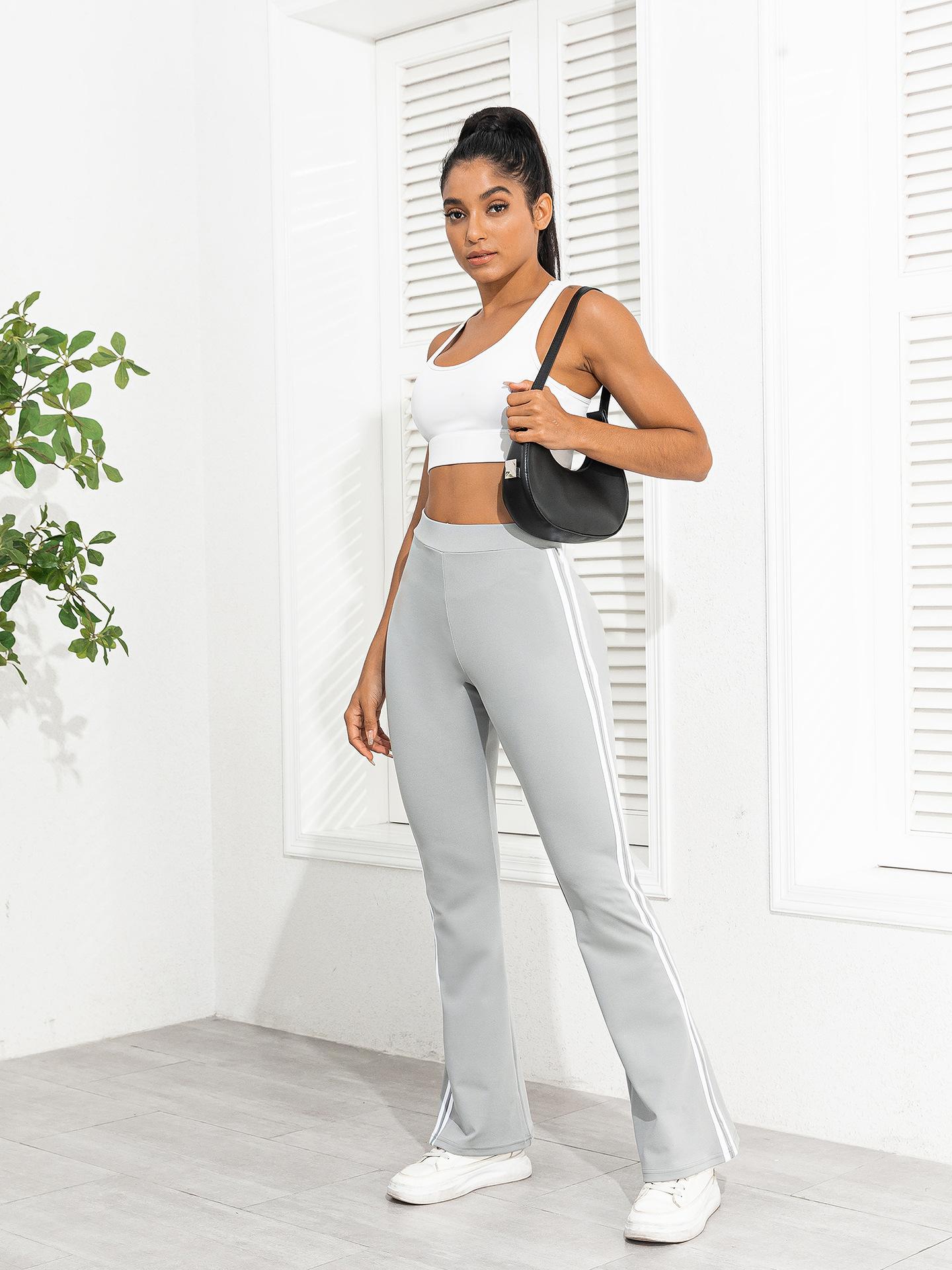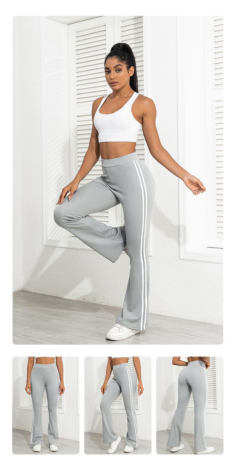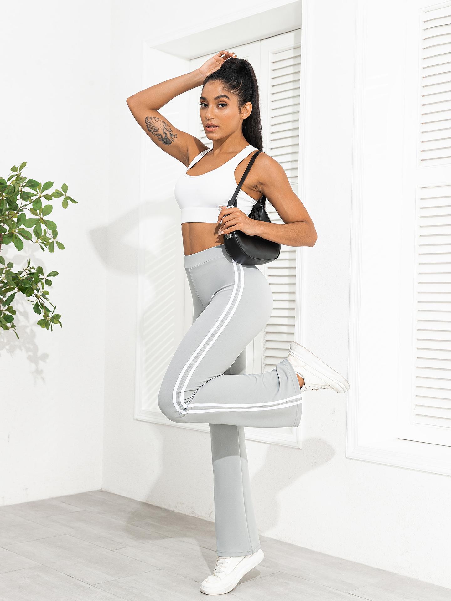 Pantalones Deportivos de Cintura Alta Dos Barras Fitness Running Pantalones de Yoga Más Largos Adelgazantes Ajustados Casuales Micro Pantalones de Pierna Ancha